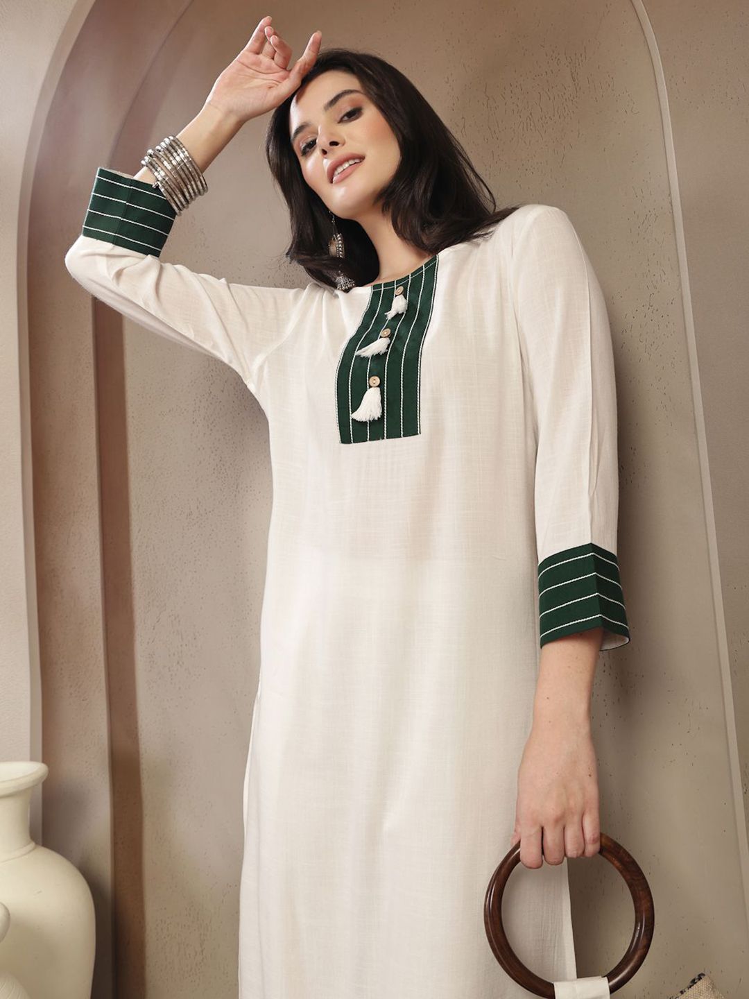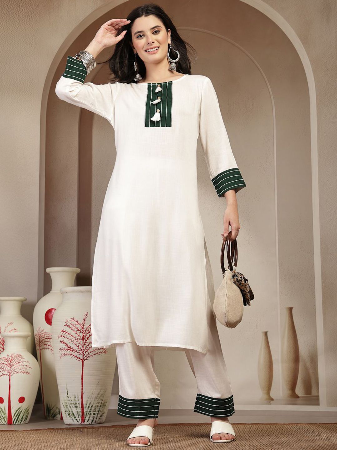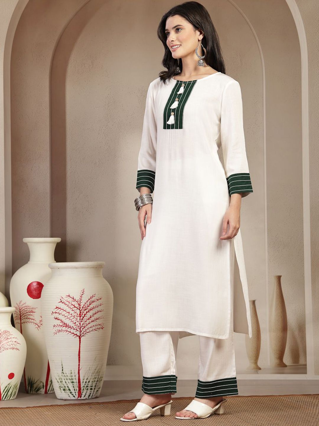 Women Solid Kurta with Trousers