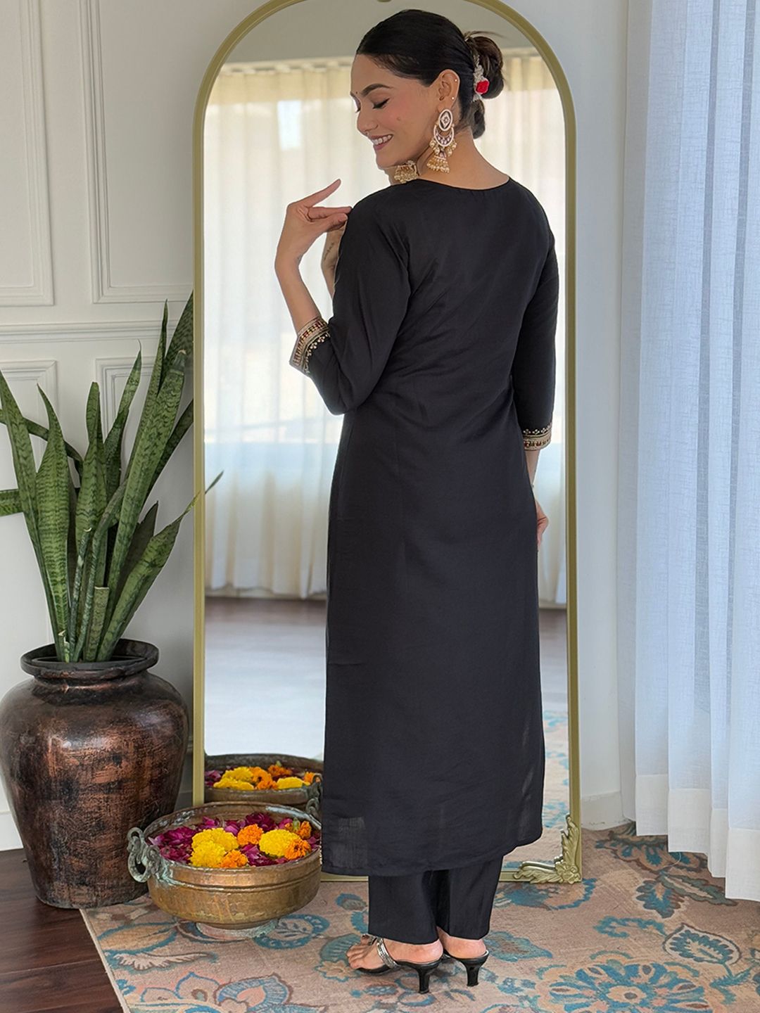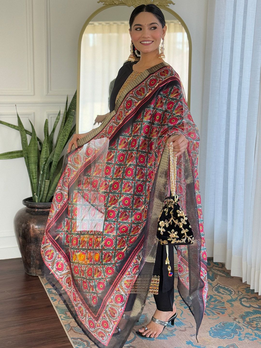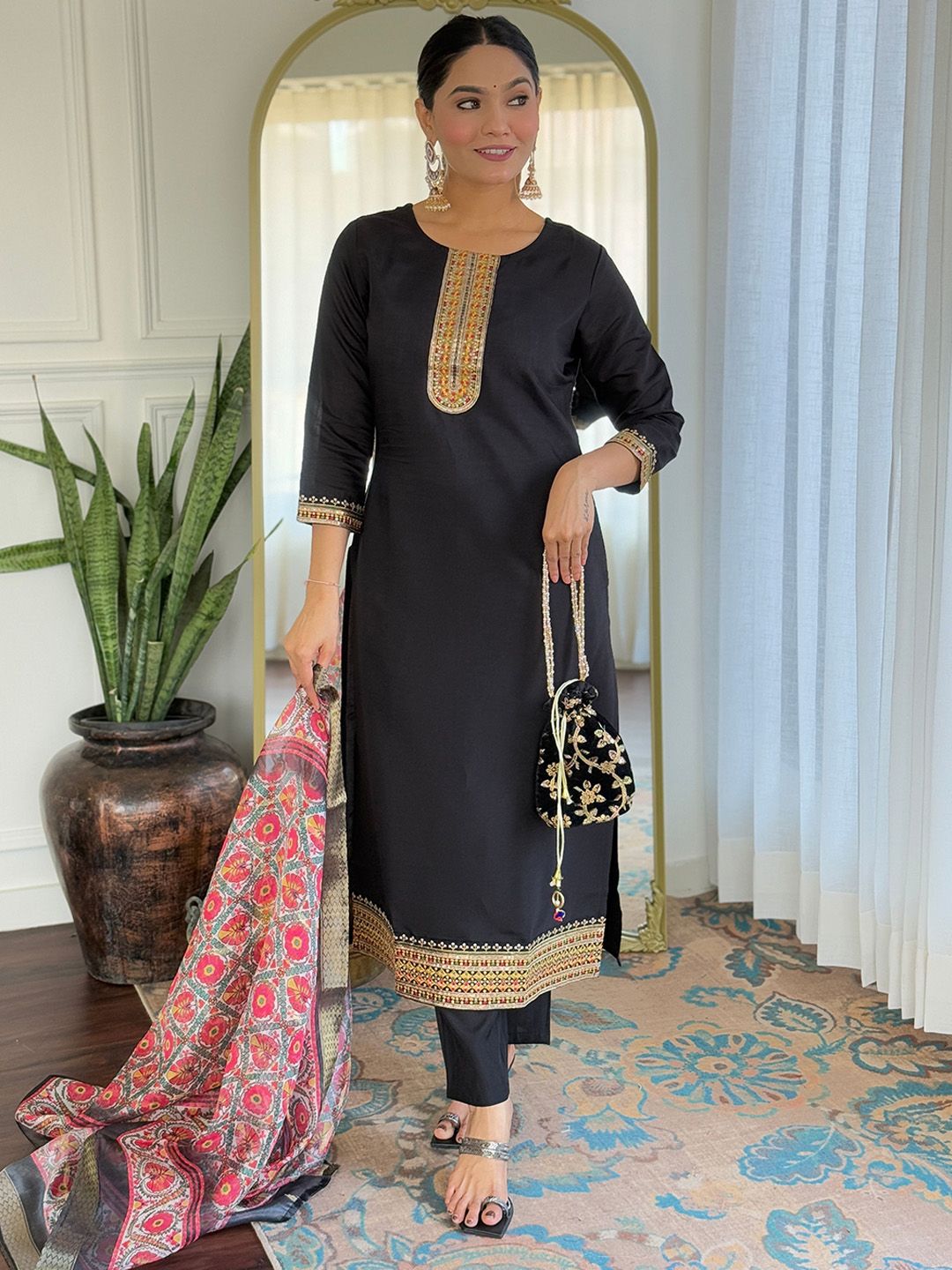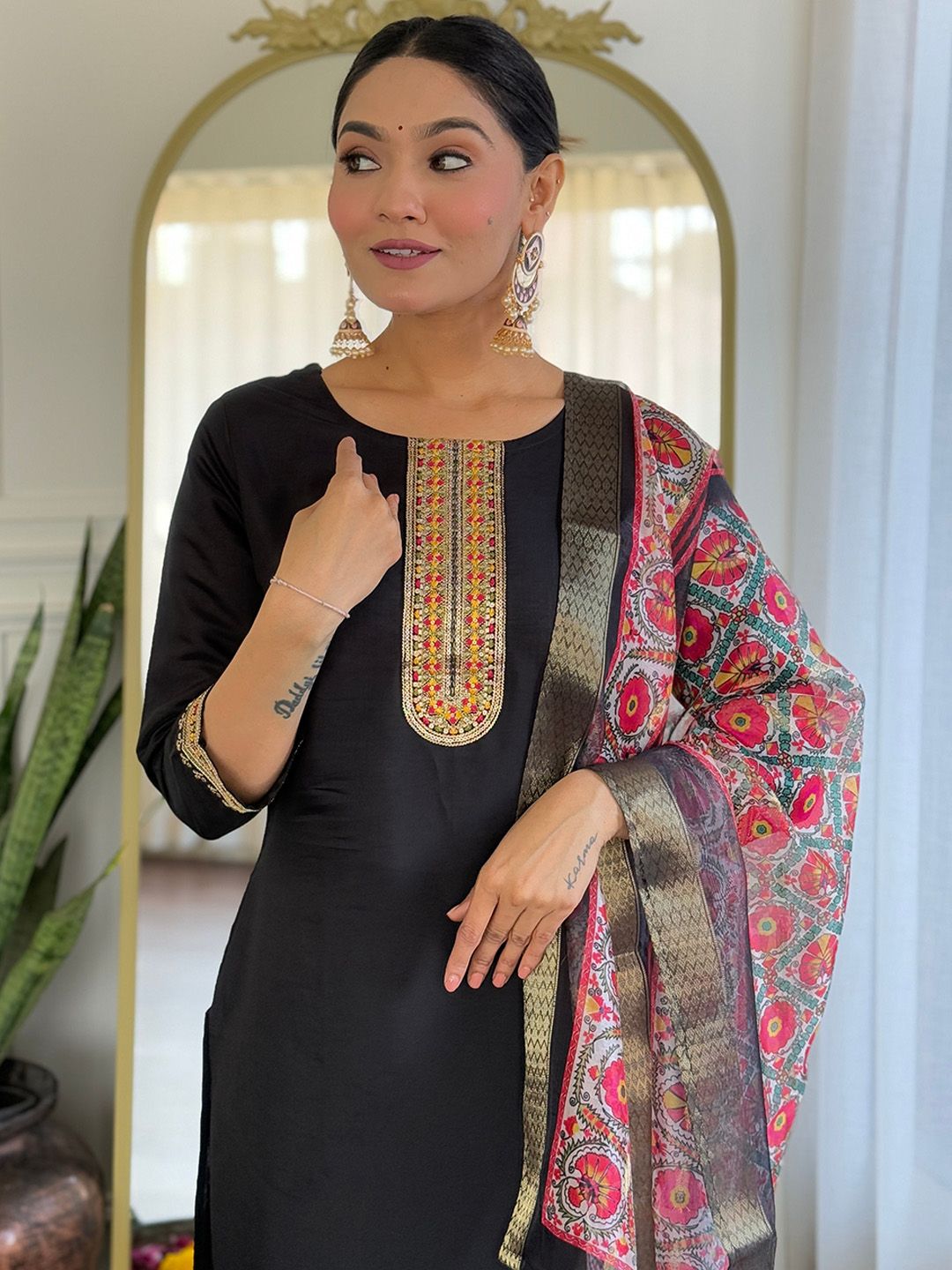 Women Woven Design Embroidered Kurta with Trousers & Dupatta