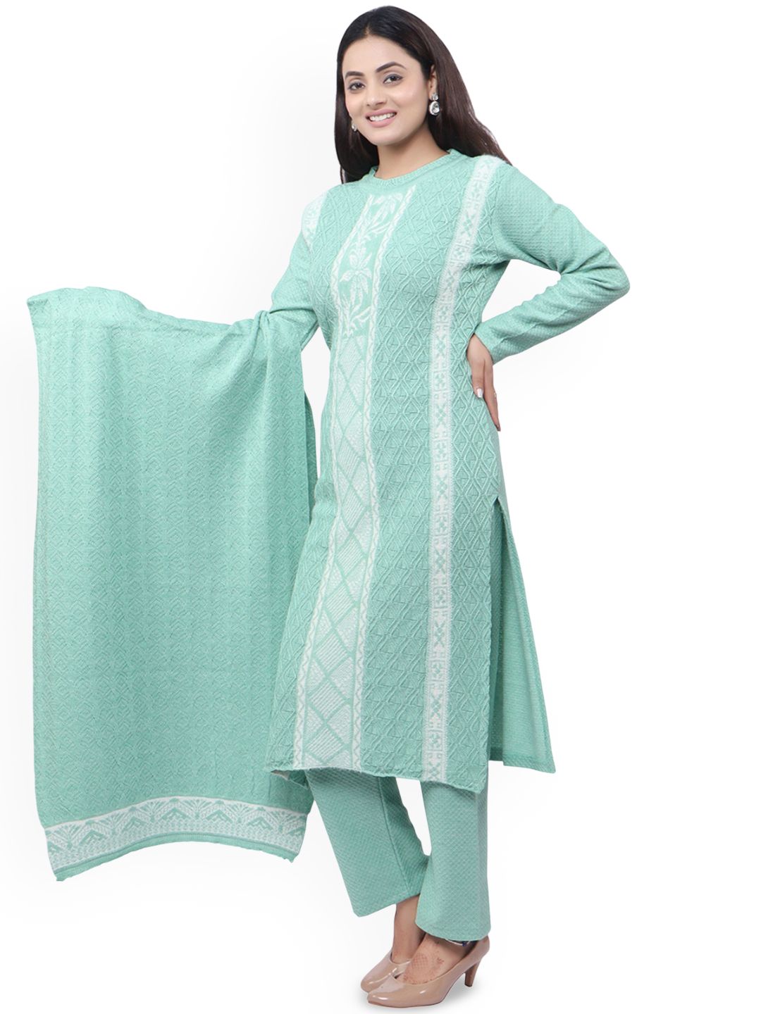 WOOL 4U Women Geometric Self Design Kurta with Trousers & Dupatta