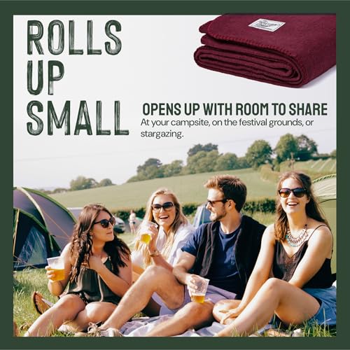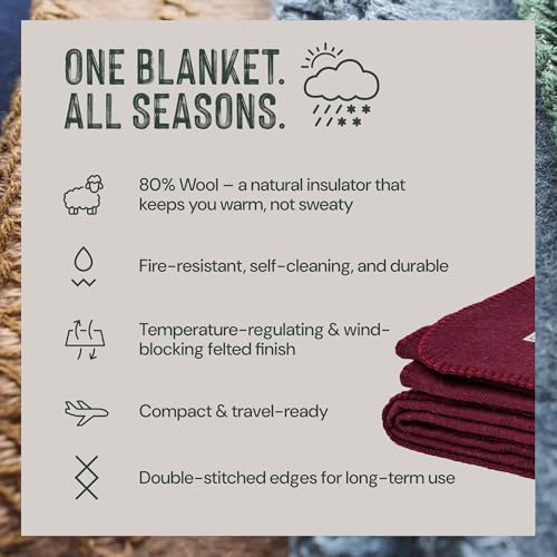Woolly Mammoth Woolen Co. | Extra Large Merino Wool Camp Blanket | The Perfect Outdoor Gear Bedroll for Bushcraft, Camping, Trekking, Hiking, Survival, or Throw Blanket at The Cabin. (Burgundy)