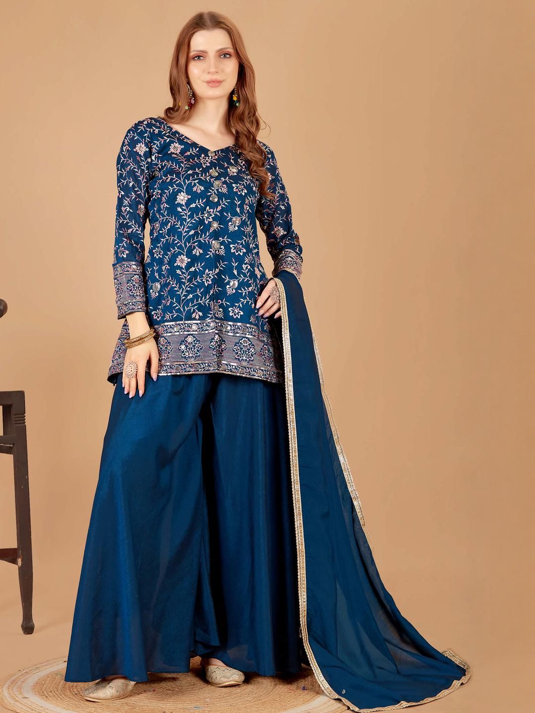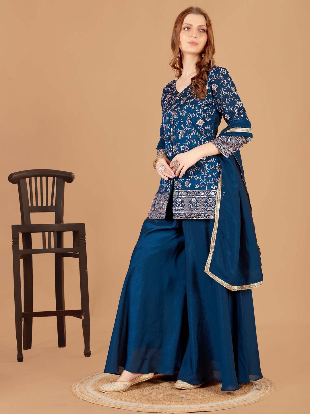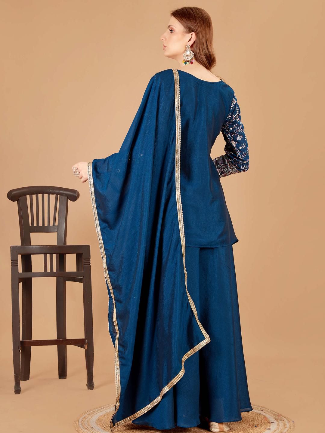 Xomantic Fashion Women Blue Art Silk Kurta Sets