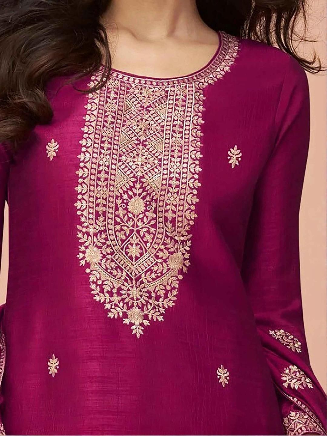 Xomantic Fashion Women Pink Art Silk Kurta Sets