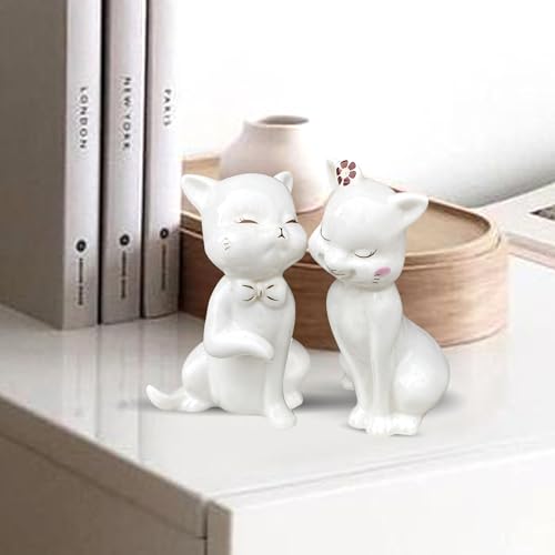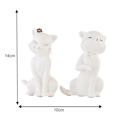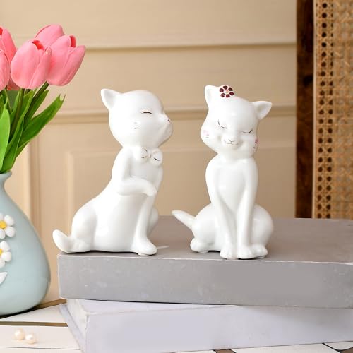 Xtore lovely ceramic cat pair statues for home decor (Pack of 2, White)