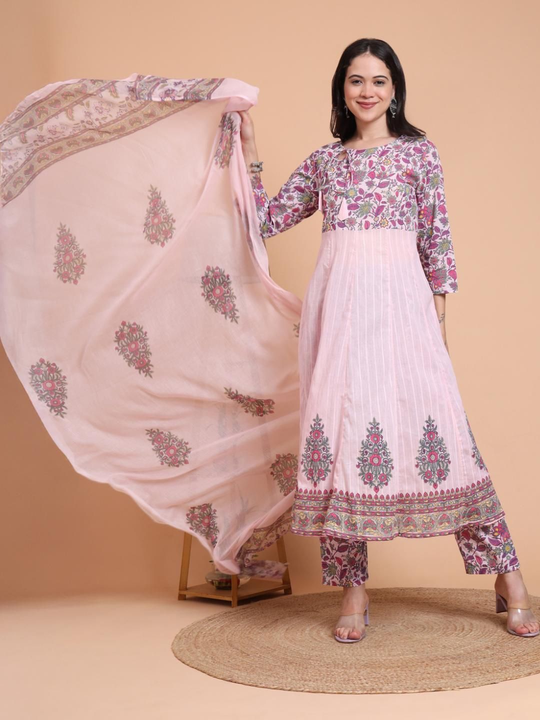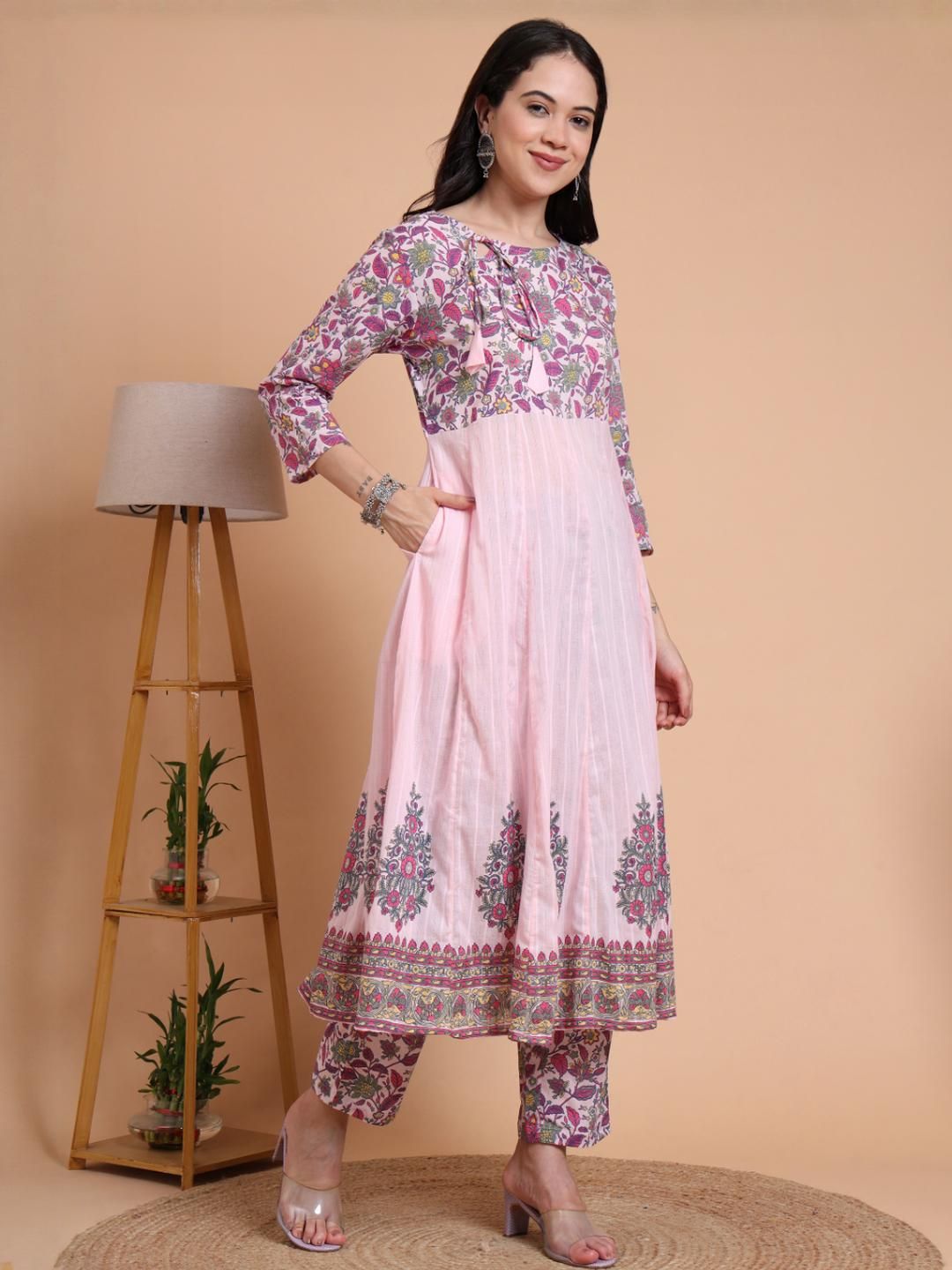 YASH GALLERY Women Printed Cotton Blend Kurta & Trousers