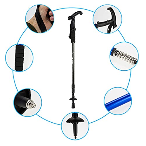 YHomU Trekking Pole Aluminium Alloy Portable Extendable 4 Sections Collapsible Folding Walking Stick Folding Collapsible Foldable Climbing Supplies for Men Outdoor