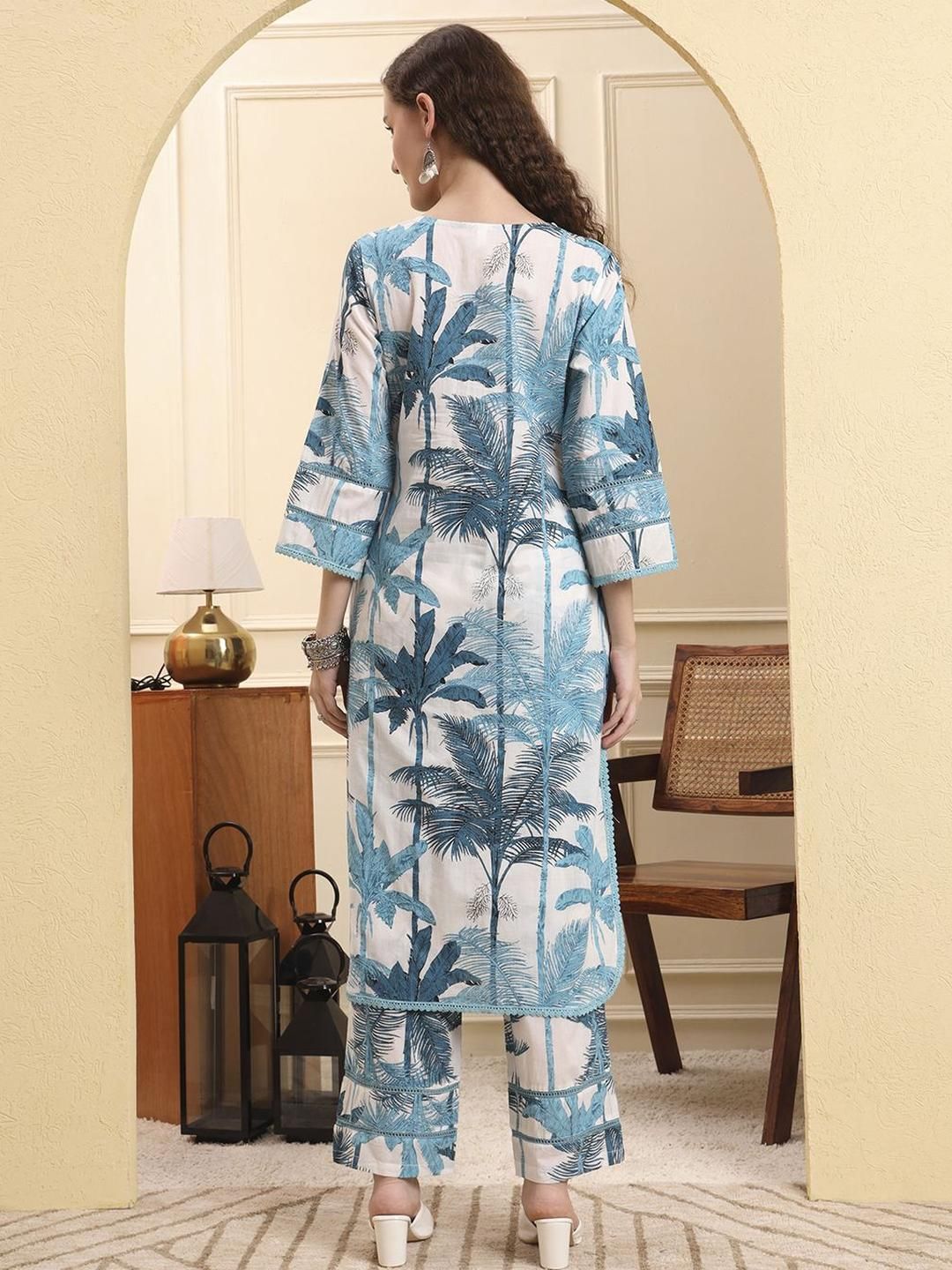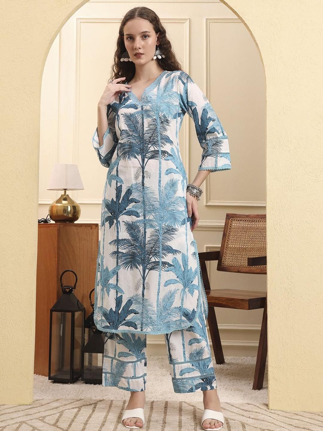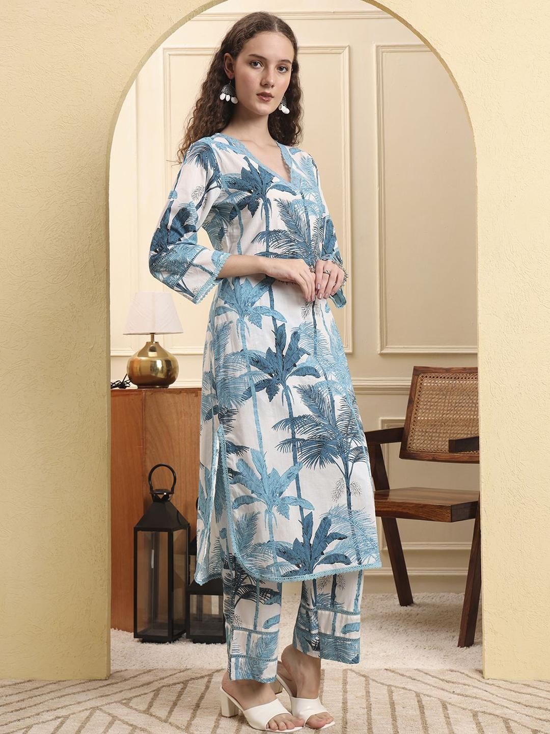 Yufta Women Embroidered Regular Pure Cotton Kurta with Trousers