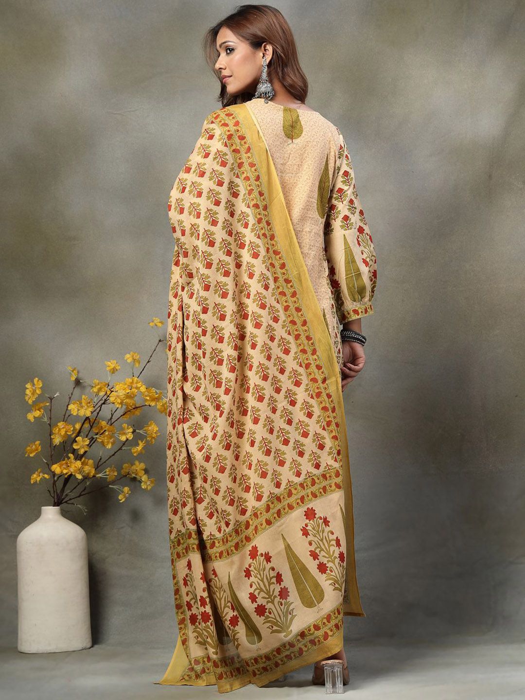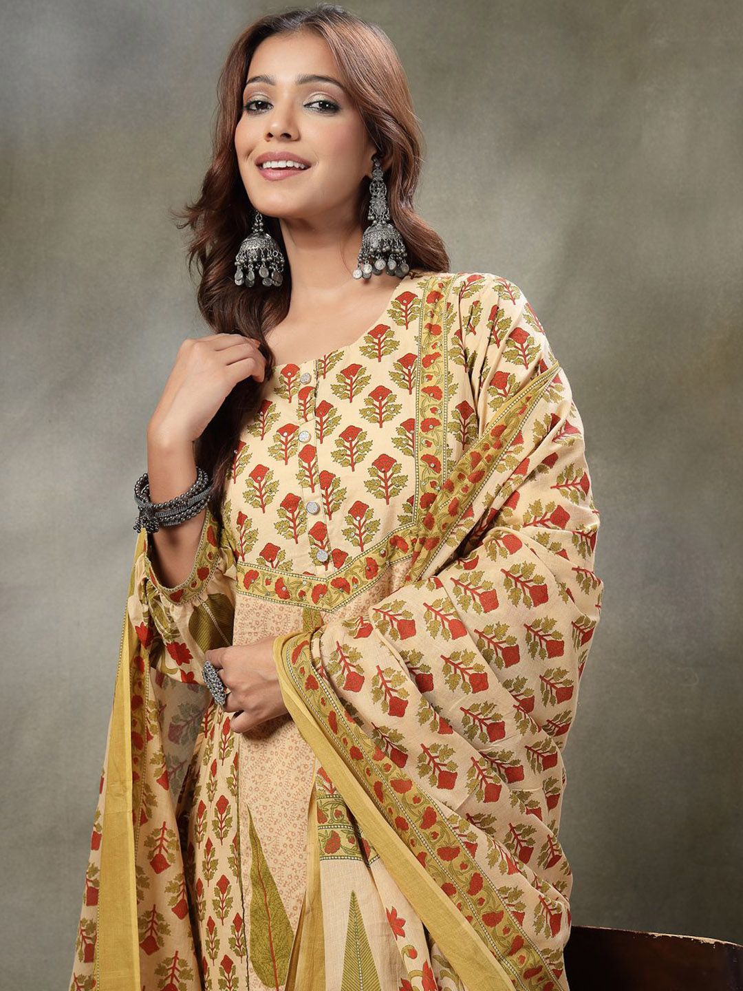 Yufta Women Ethnic Motifs Printed Cotton Kurta with Trouser & Dupatta