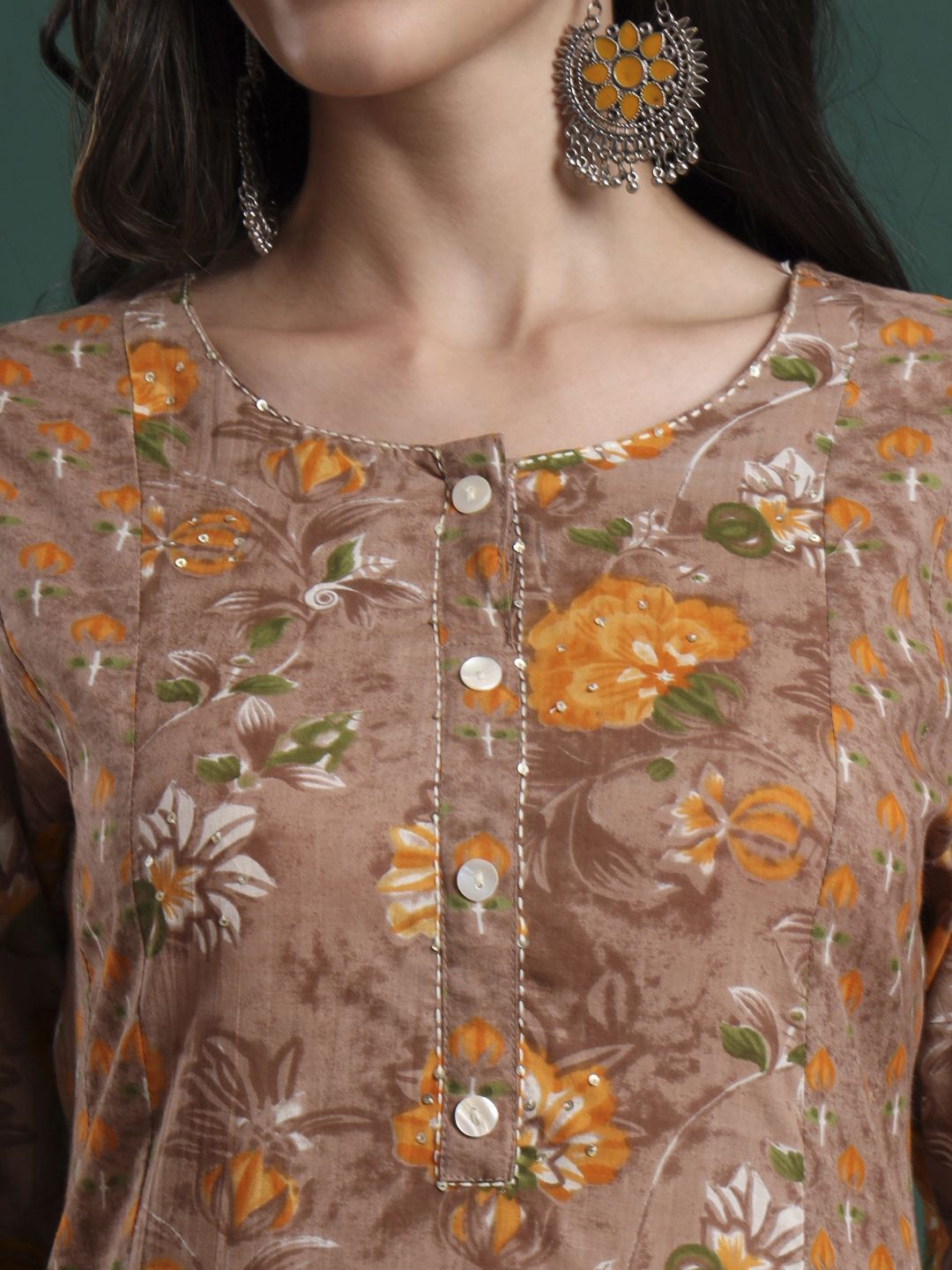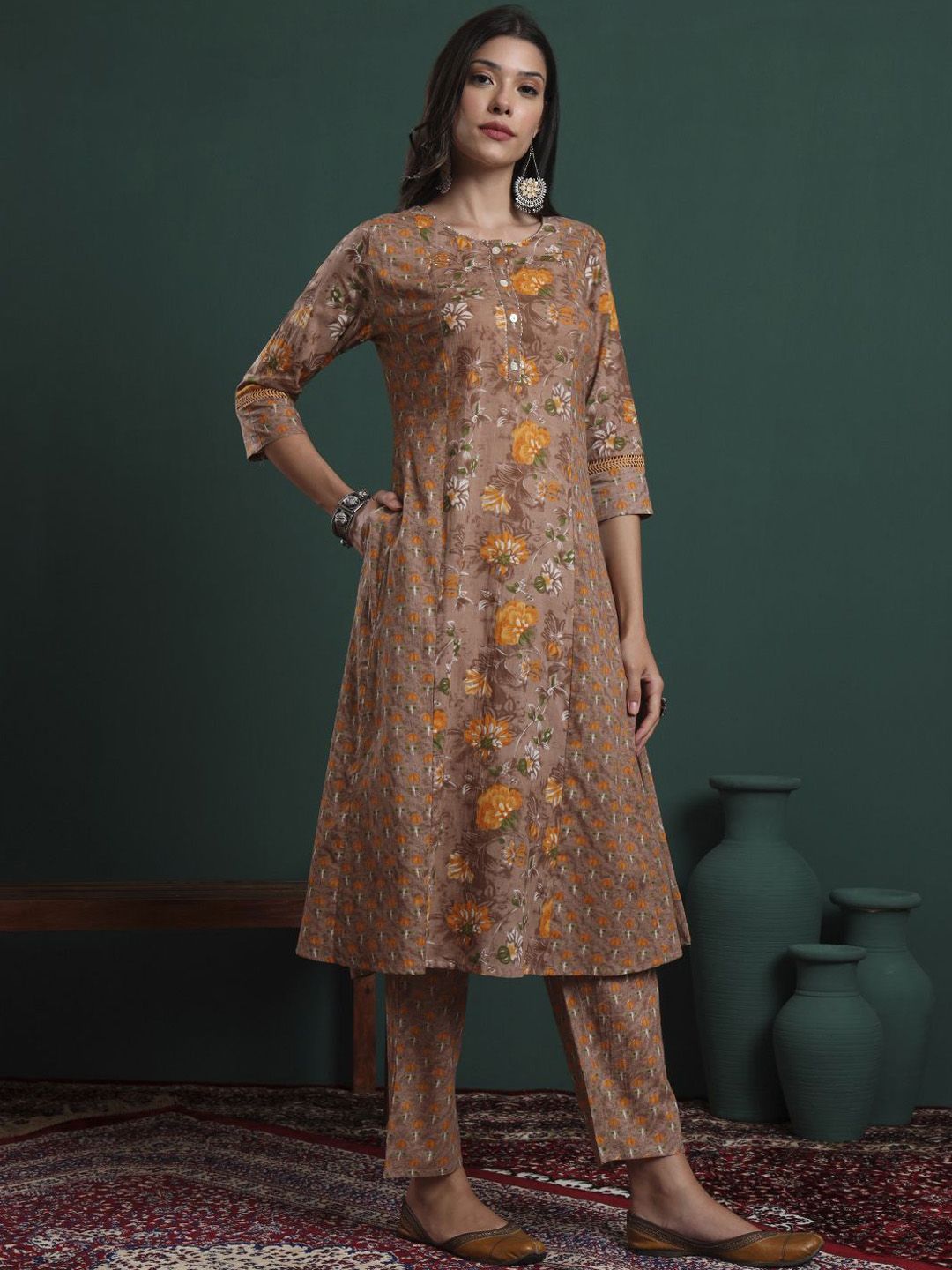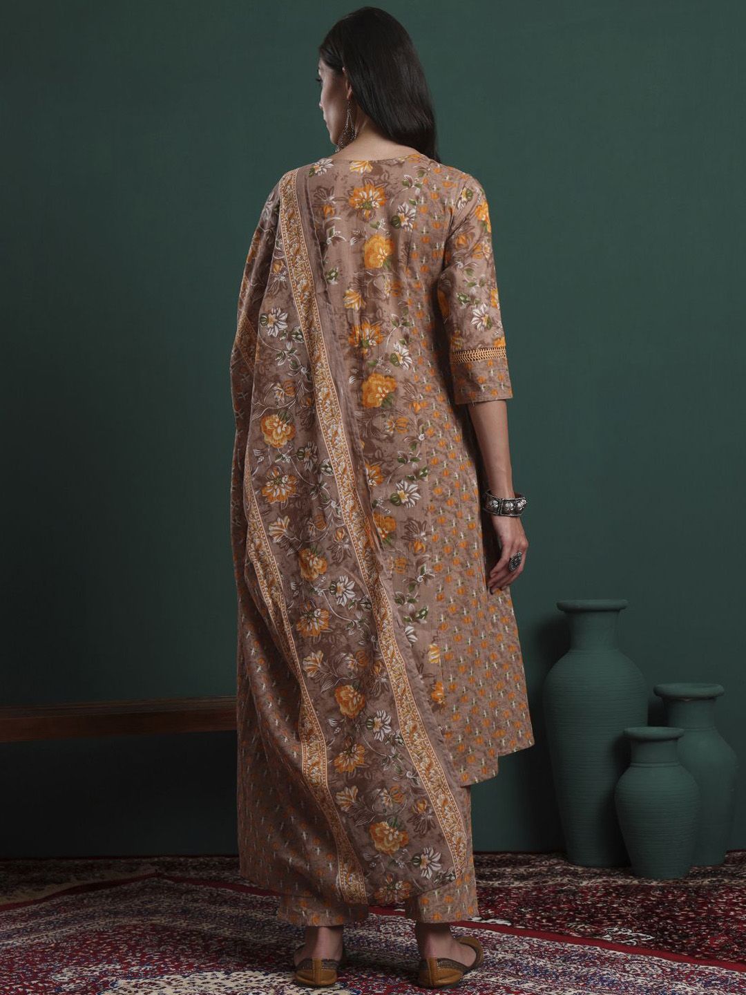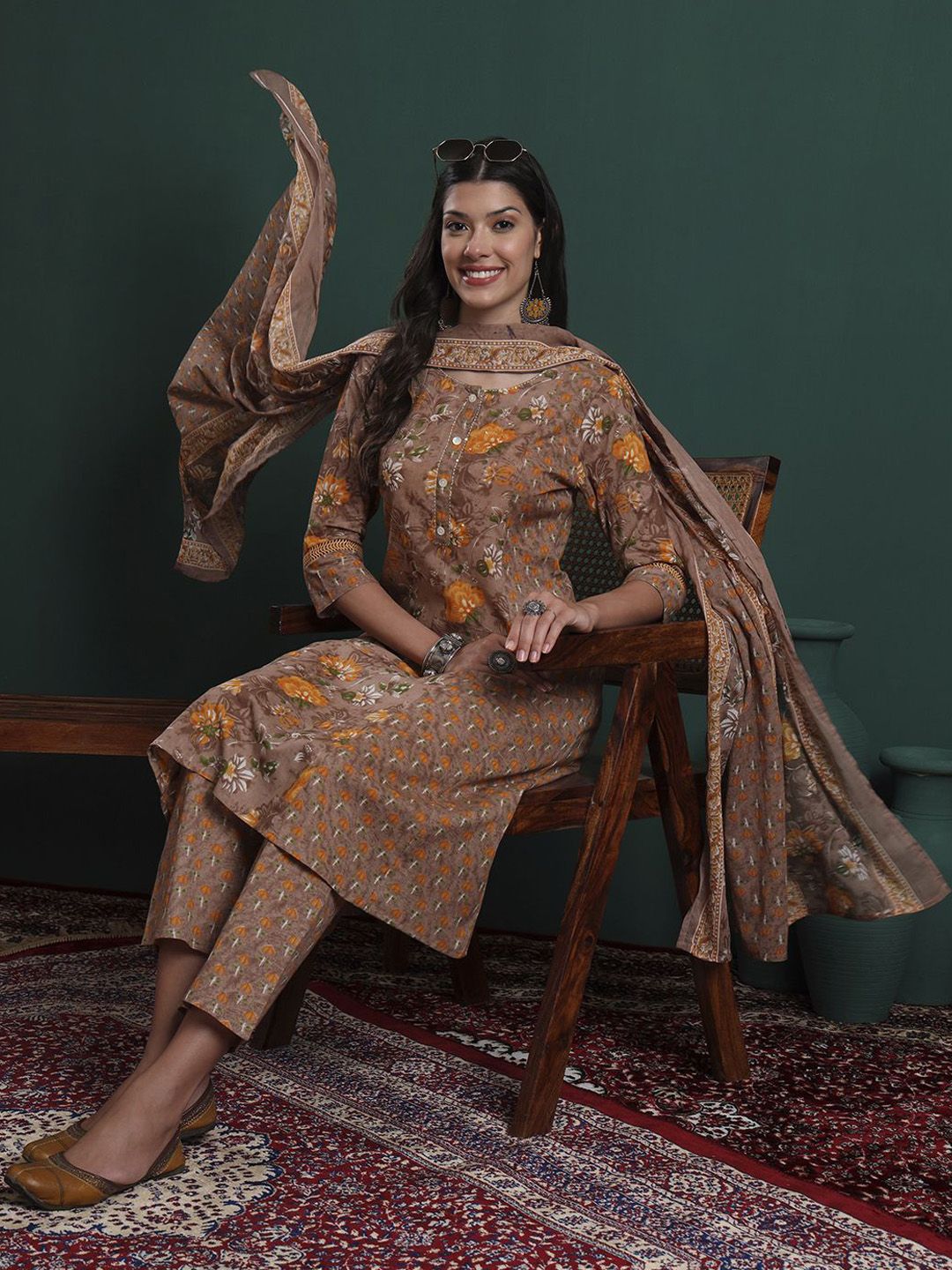 Yufta Women Floral Embroidered Cotton Kurta with Trousers & Dupatta