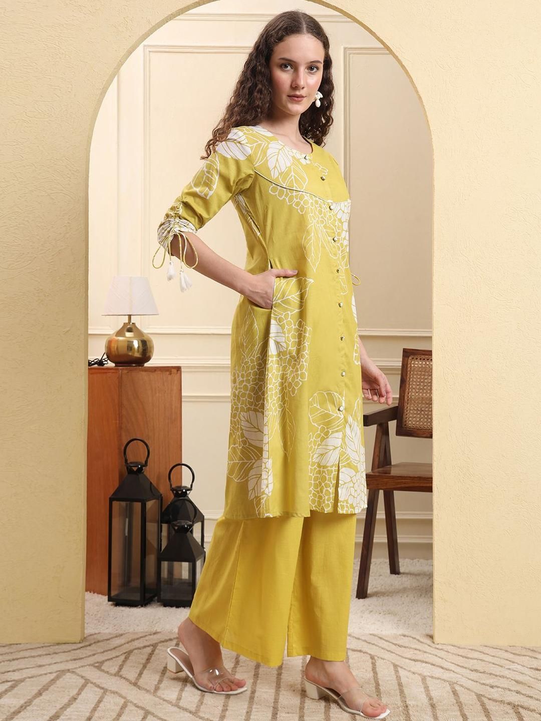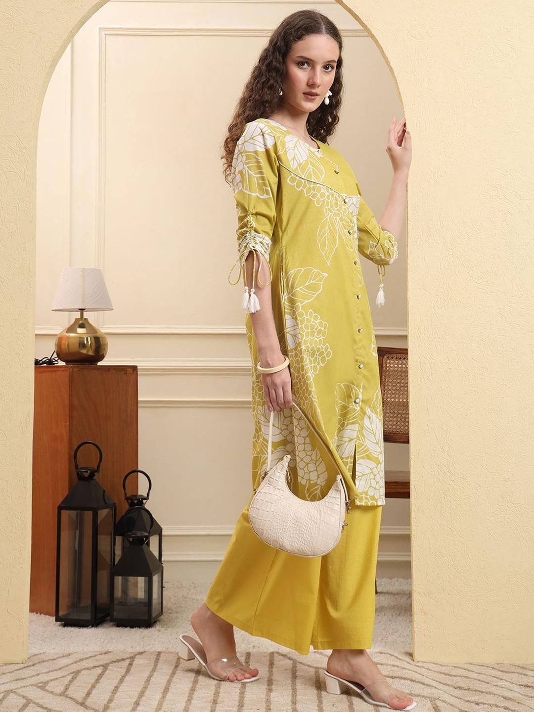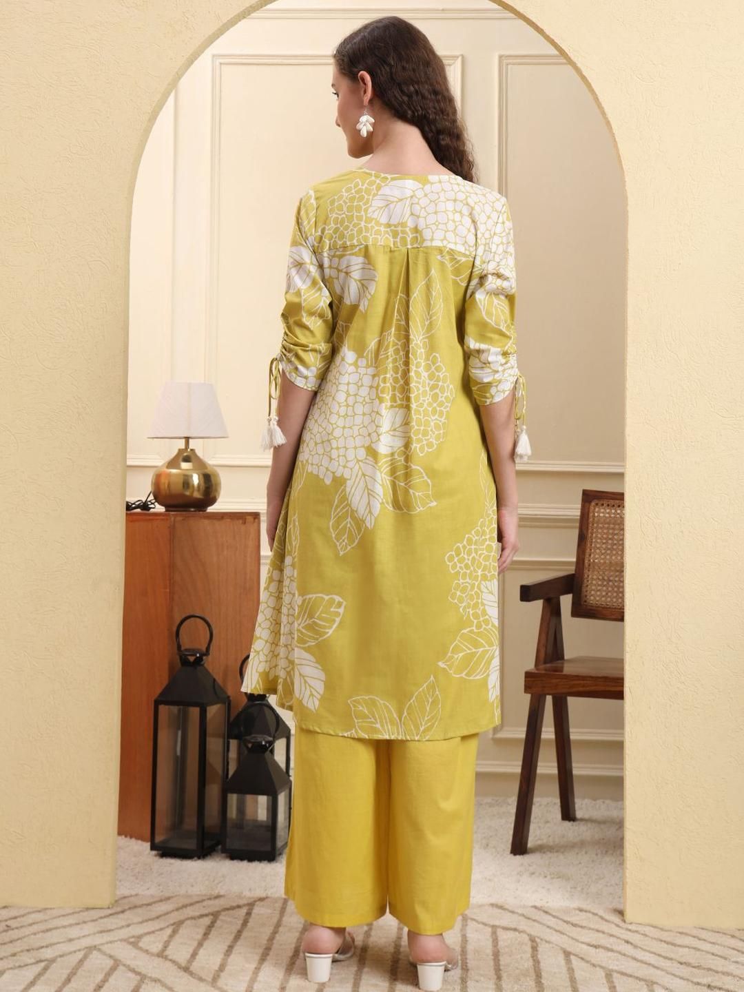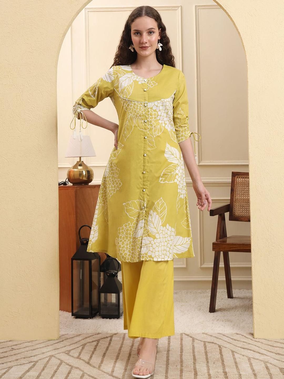 Yufta Women Floral Printed Cotton A-Line Kurta with Palazzos