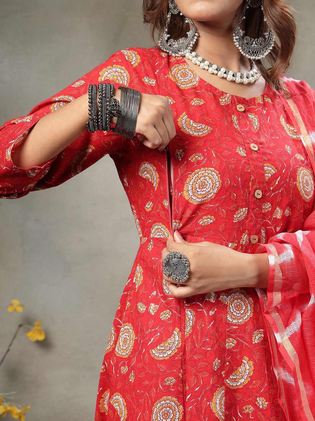 Yufta Women Floral Printed Maternity Pure Cotton Kurta with Trousers & With Dupatta