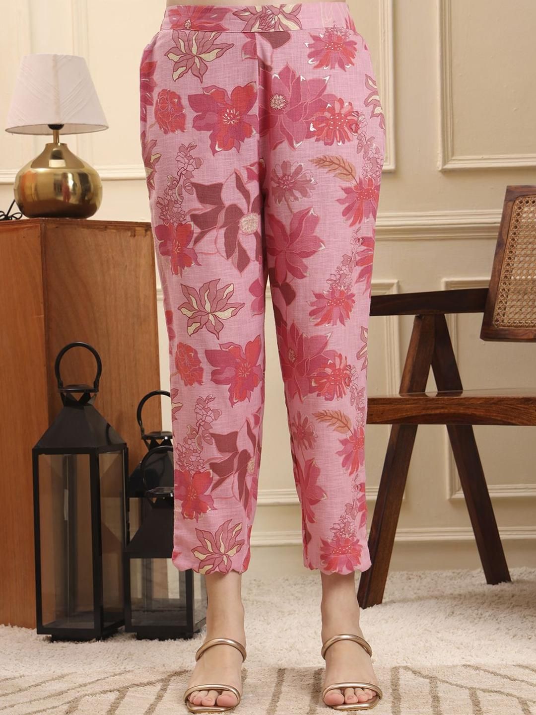 Yufta Women Floral Printed Regular Pure Cotton Kurta with Trousers Kurta Sets