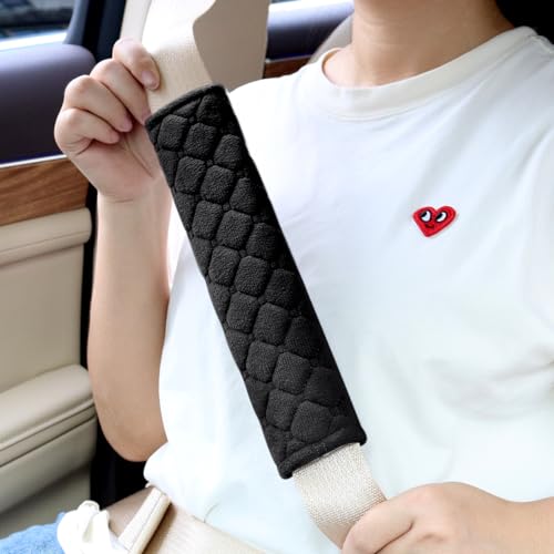 High Quality Material: Our car seat belt pads is made of plush fabrics, very soft and skin-friendly,not shed lint and will not fade.Soft foam padding will make you feel more comfortable, even during long drives Universal Size: The size of the seat belt cover is 9.7 x 2.5 inches/25 x 6.4 cm, suitable for most vehicle seat belts. Whether it's a car, SUV, truck or van, it can be easily matched Fashion Decoration: The smooth leather surface adopts a square grid embossed design, which not only increases the beauty, but also shows fine workmanship and unique personality taste. Whether it is used with vehicle interiors or as daily necessities, it can be an excellent choice to show your personality Easy to Use: With a unique checkered appearance design, installation is simple and fast, without any tools.You just need to open the seat belt and fold it on the seat belt, allowing you to enjoy comfort and convenience at any time Widely Used: This seat belt pad is not only suitable for various vehicles, but also can be used as a perfect pad for backpacks, laptops, luggage, cameras. Its soft texture can effectively relieve fatigue when carrying or carrying items for a long time, making your life easier and more convenient