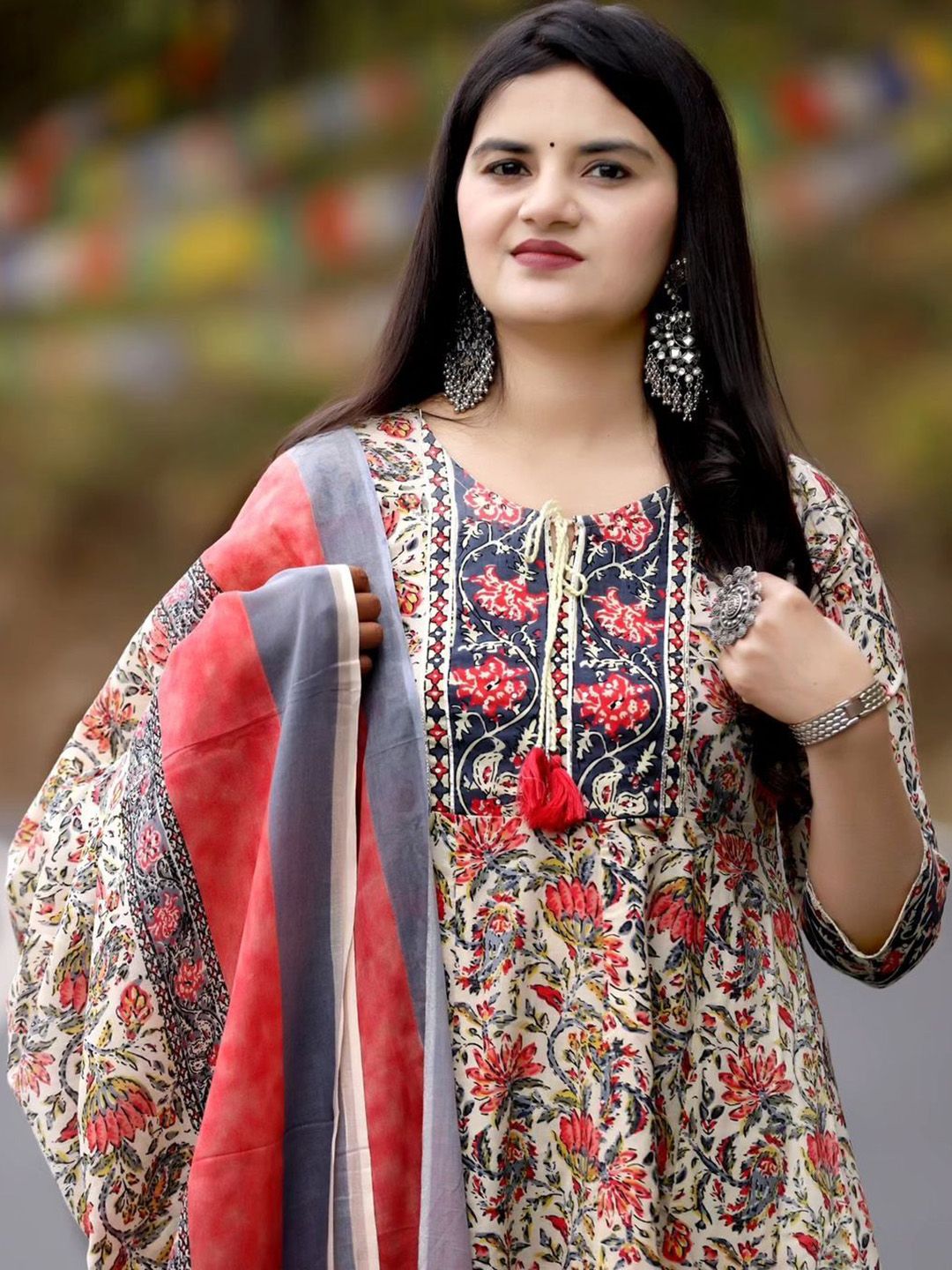 Buy this stylish YUSRA Floral Printed Round Neck A-LIne Kurta With Trousers & Dupatta at Marincart Nepal. This product offers great quality and value. Perfect for those looking for the latest trends in fashion. Get yours now at unbeatable prices.