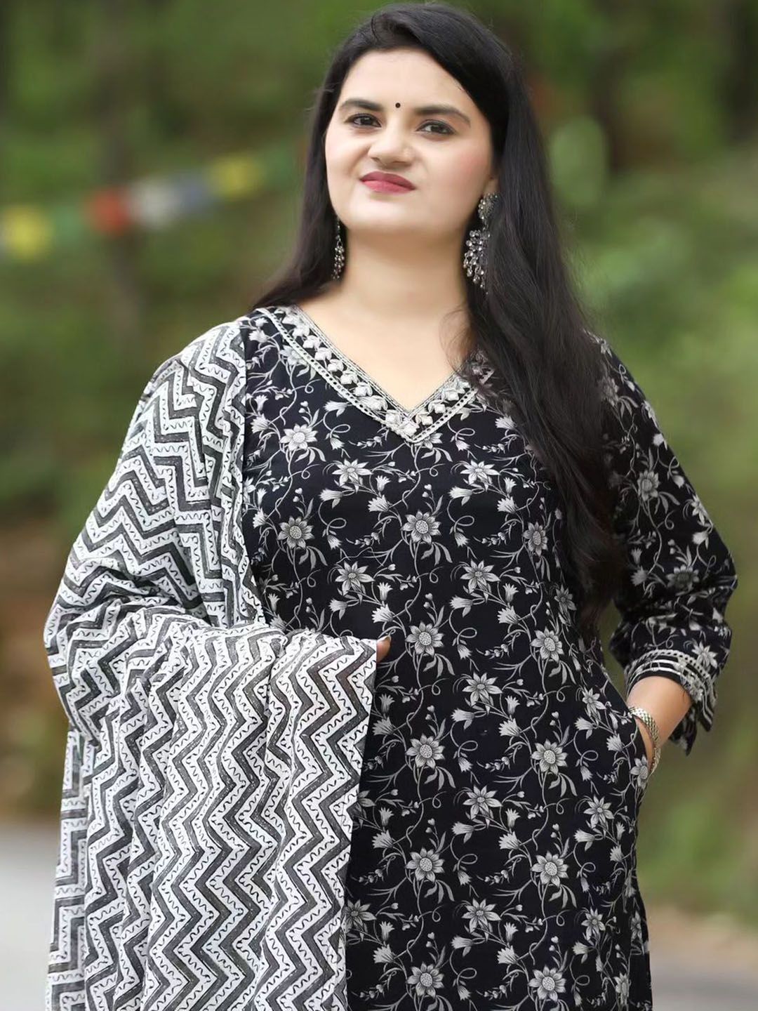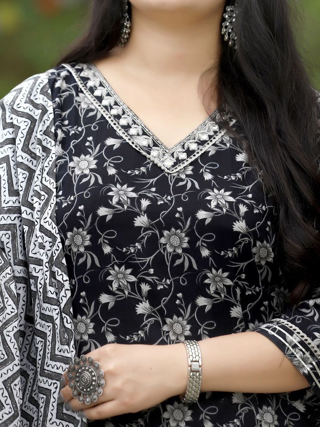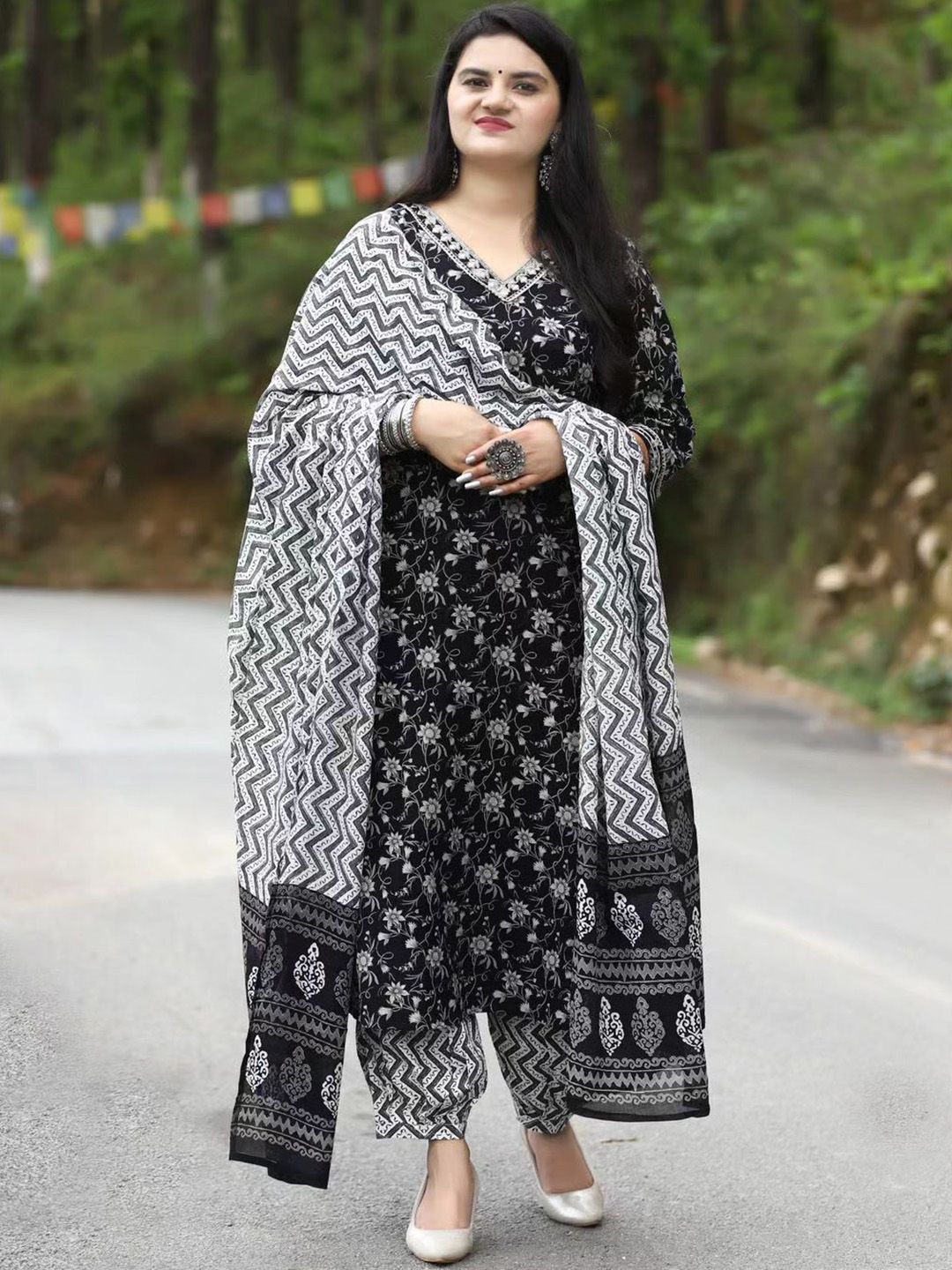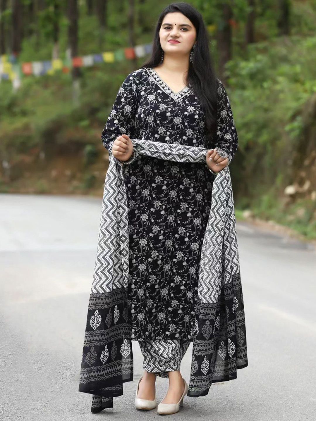 YUSRA Floral Printed V-Neck Straight Kurta With Trousers & Dupatta