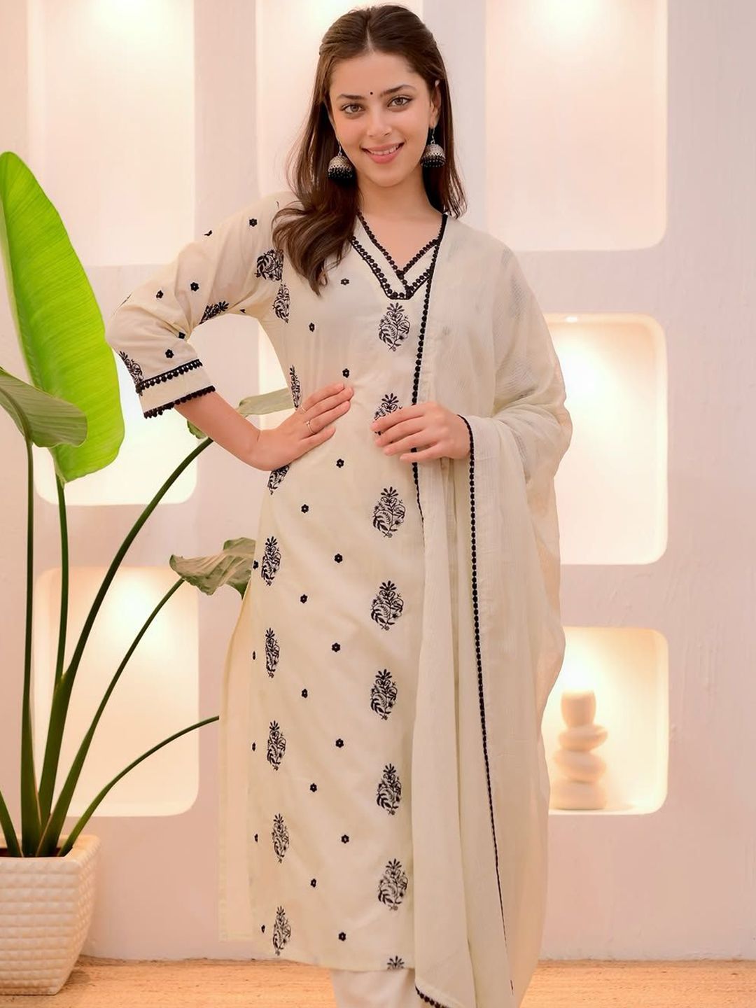 Buy this stylish ZAIERRA Floral Embroidered V-Neck Sequinned Kurta With Trousers & Dupatta at Marincart Nepal. This product offers great quality and value. Perfect for those looking for the latest trends in fashion. Get yours now at unbeatable prices.