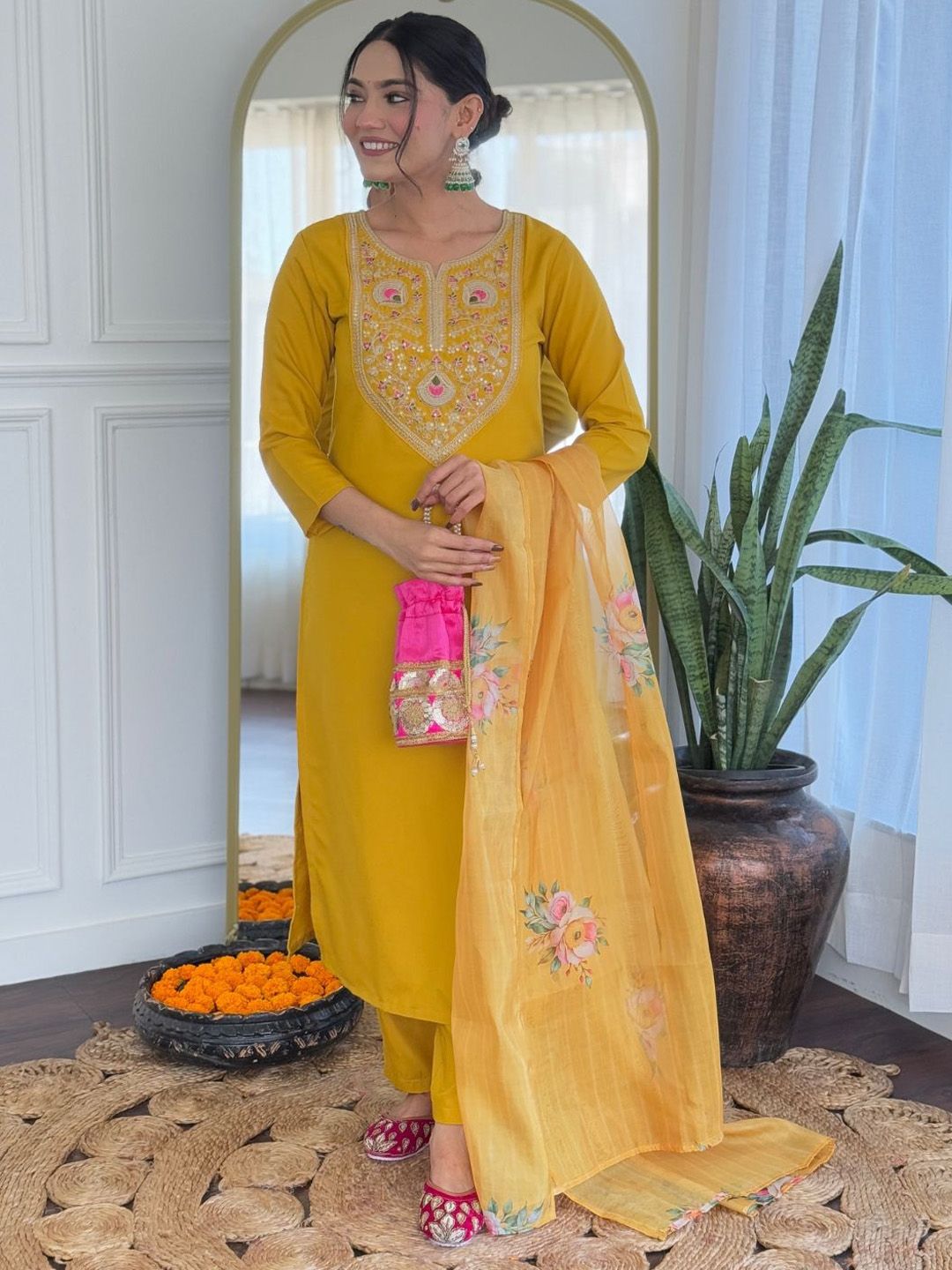 ZAIERRA Women Ethnic Motifs Embroidered Regular Sequinned Kurta With Trousers & Dupatta