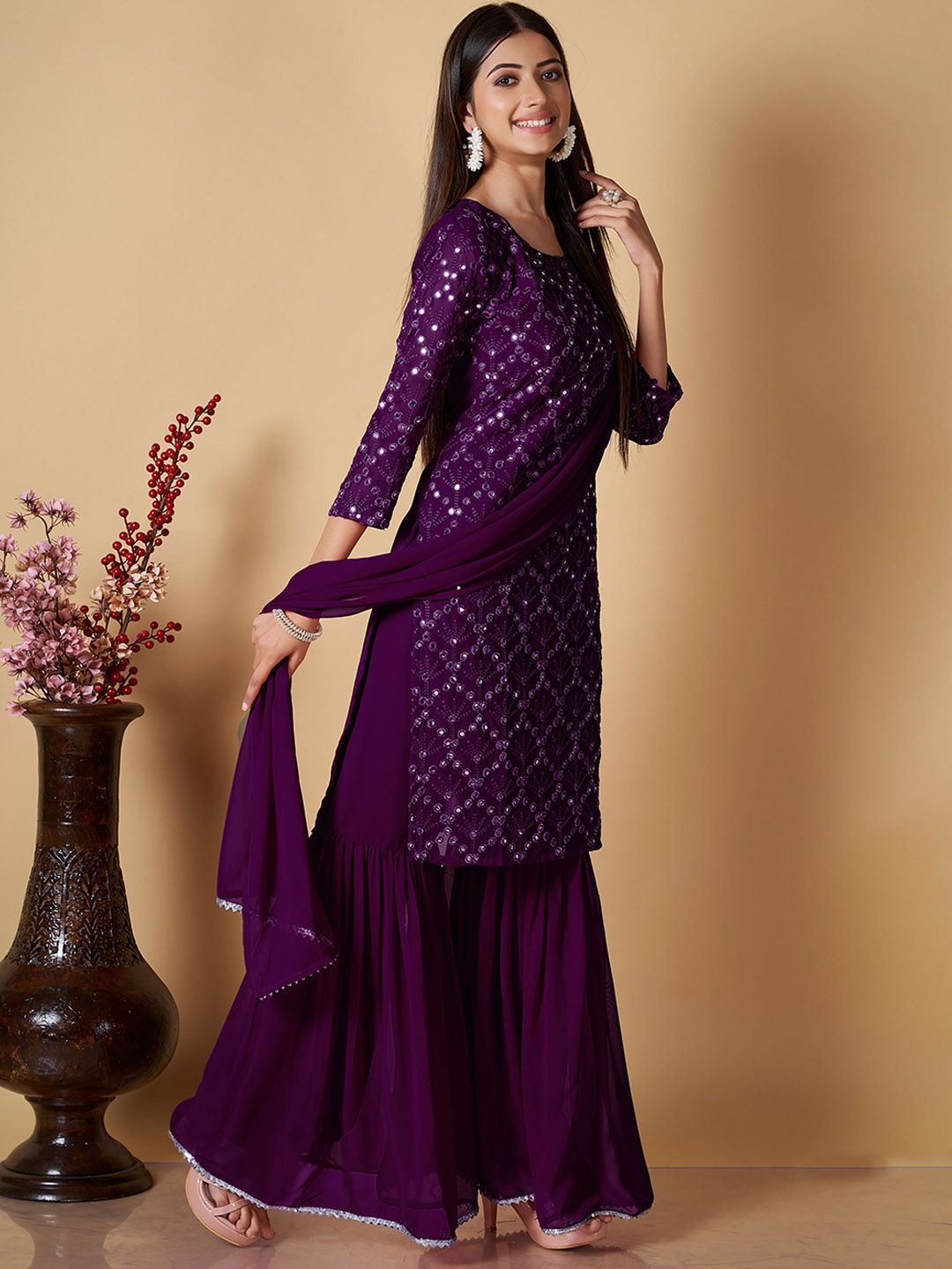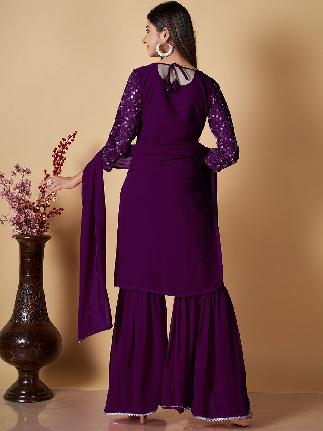 ZARIMO Women Quirky Embroidered Kurta with Sharara & Dupatta