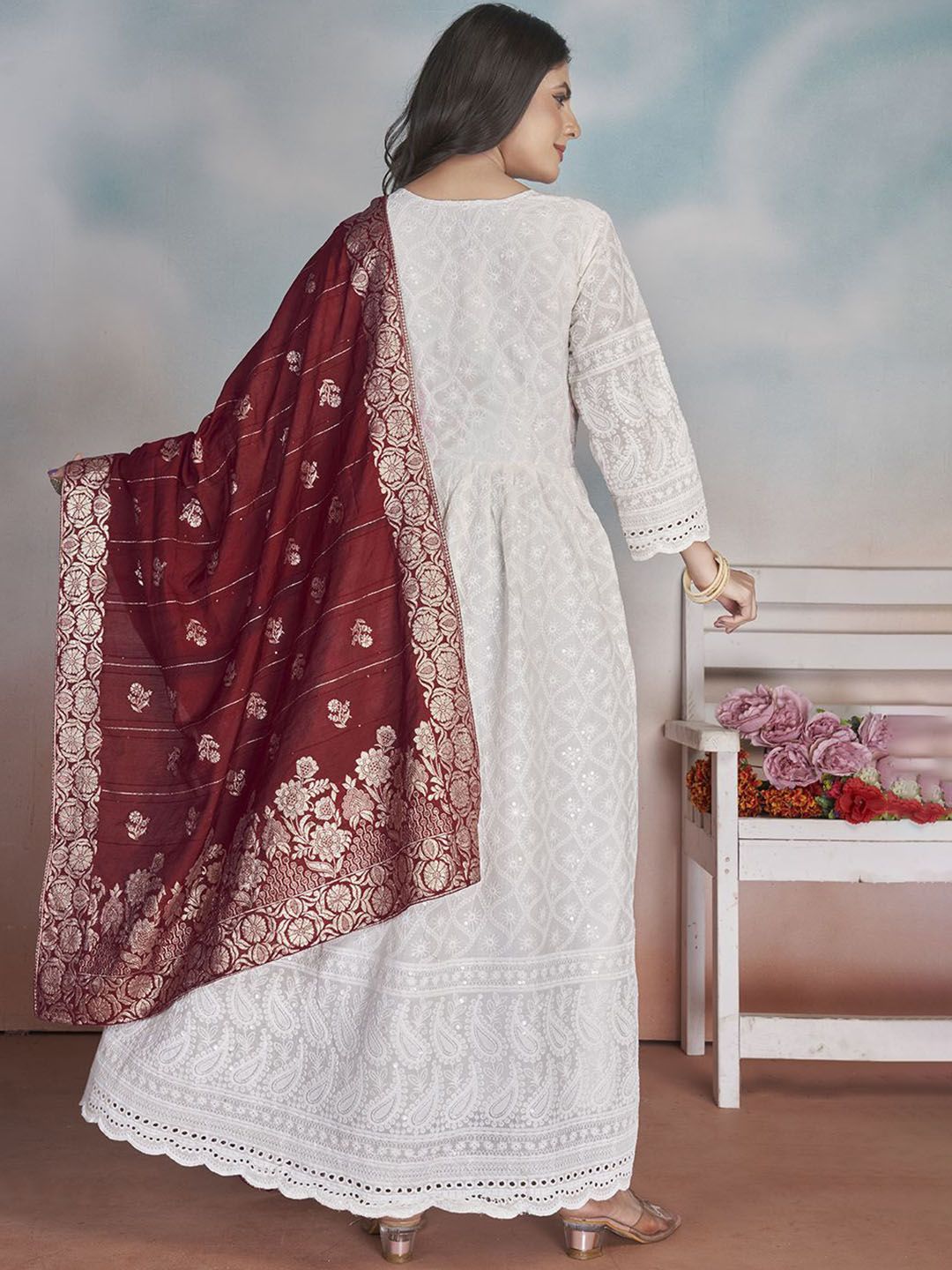 Buy this stylish ZIRVI Embroidered Chikankari Pure Cotton Notch Neck Anarkali Kurta With Palazzos & Dupatta at Marincart Nepal. This product offers great quality and value. Perfect for those looking for the latest trends in fashion. Get yours now at unbeatable prices.