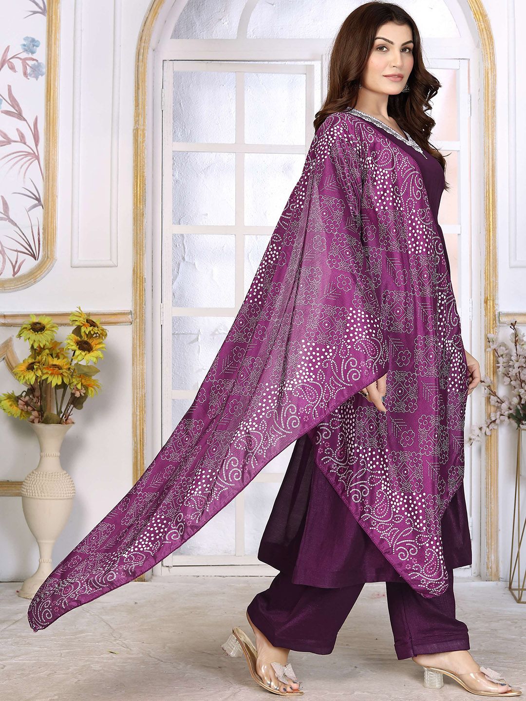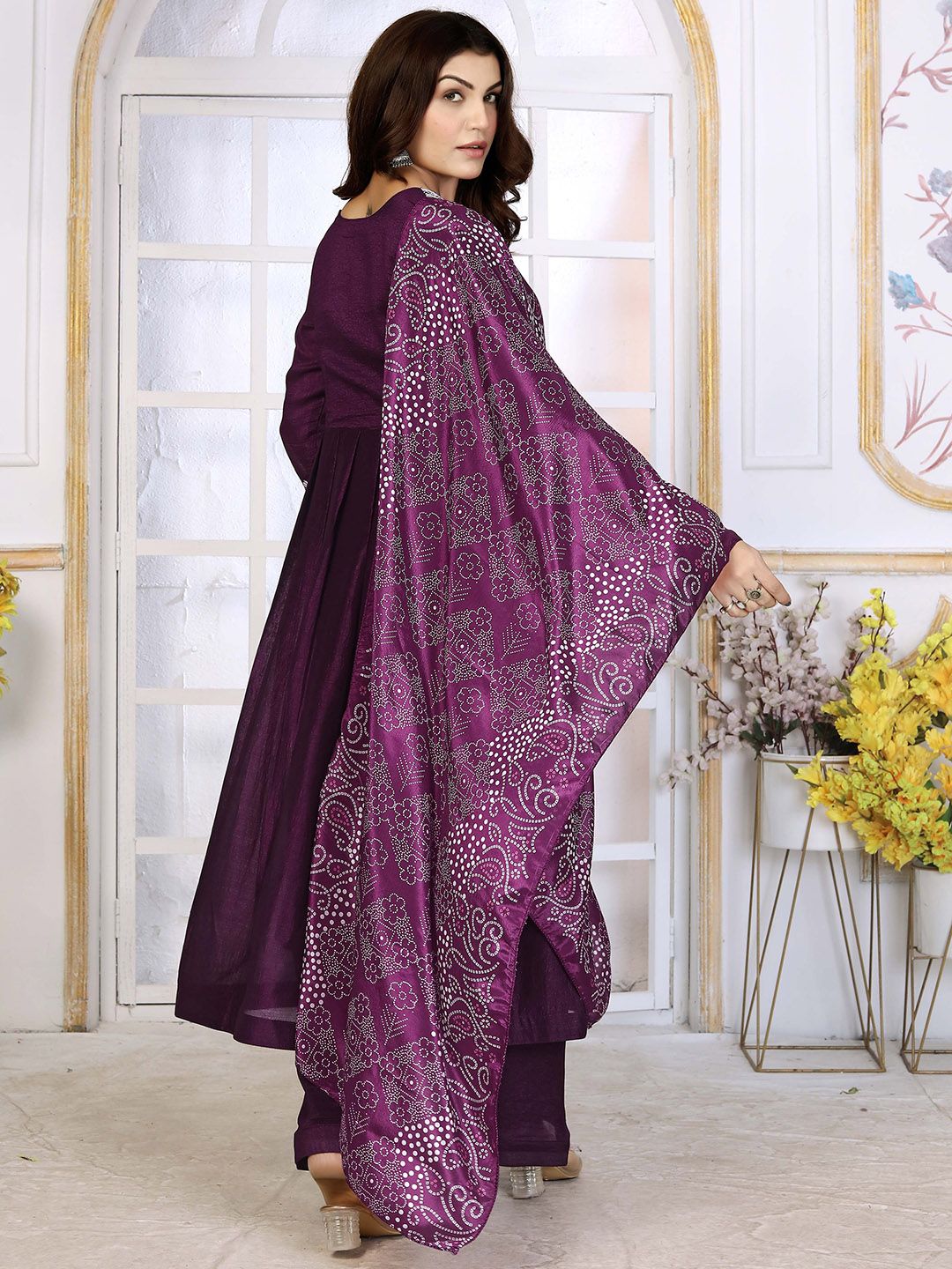 ZIRVI Floral Embroidered V-Neck Zari Work Pleated Anarkali Kurta With Palazzos & Dupatta