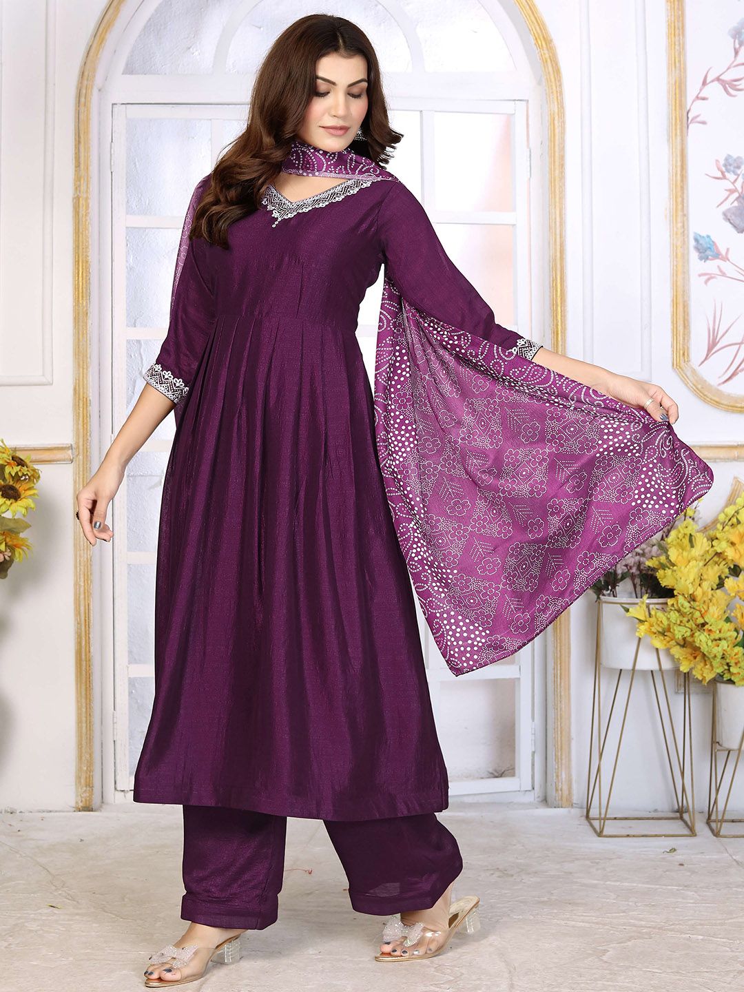 Buy this stylish ZIRVI Floral Embroidered V-Neck Zari Work Pleated Anarkali Kurta With Palazzos & Dupatta at Marincart Nepal. This product offers great quality and value. Perfect for those looking for the latest trends in fashion. Get yours now at unbeatable prices.