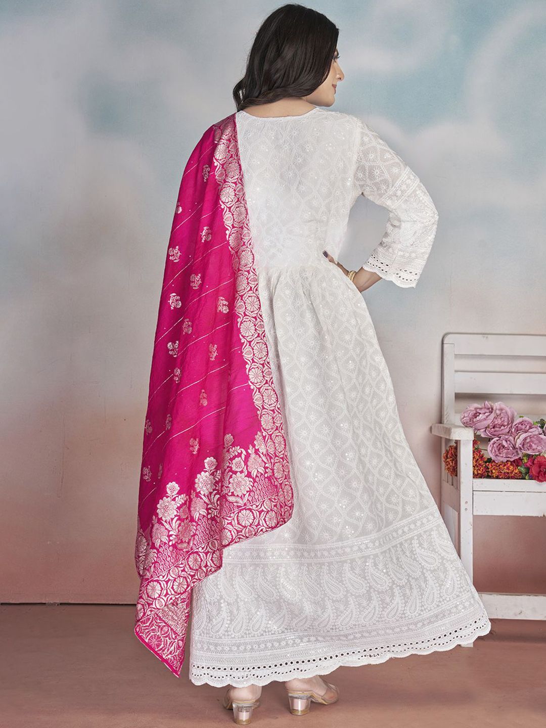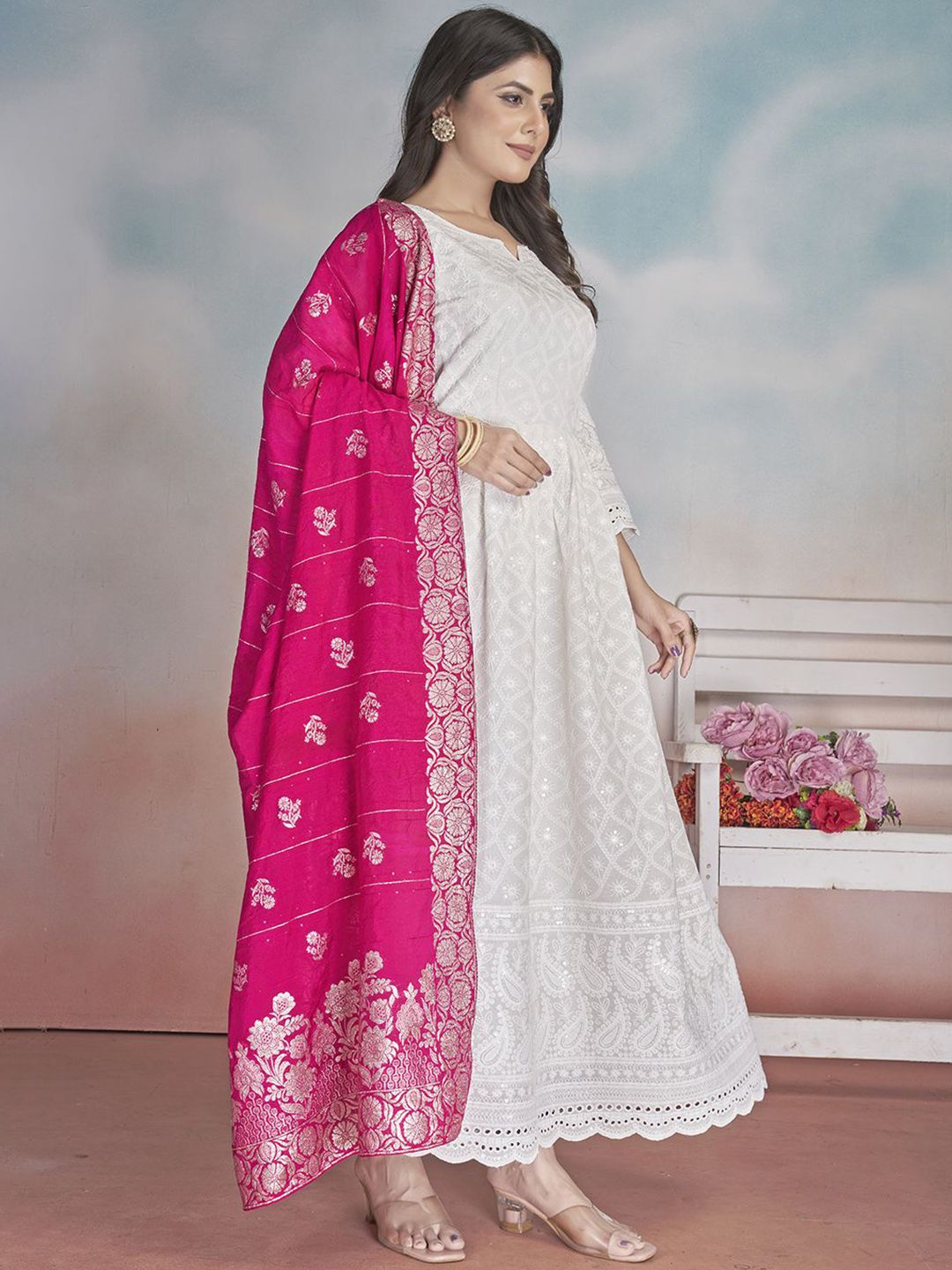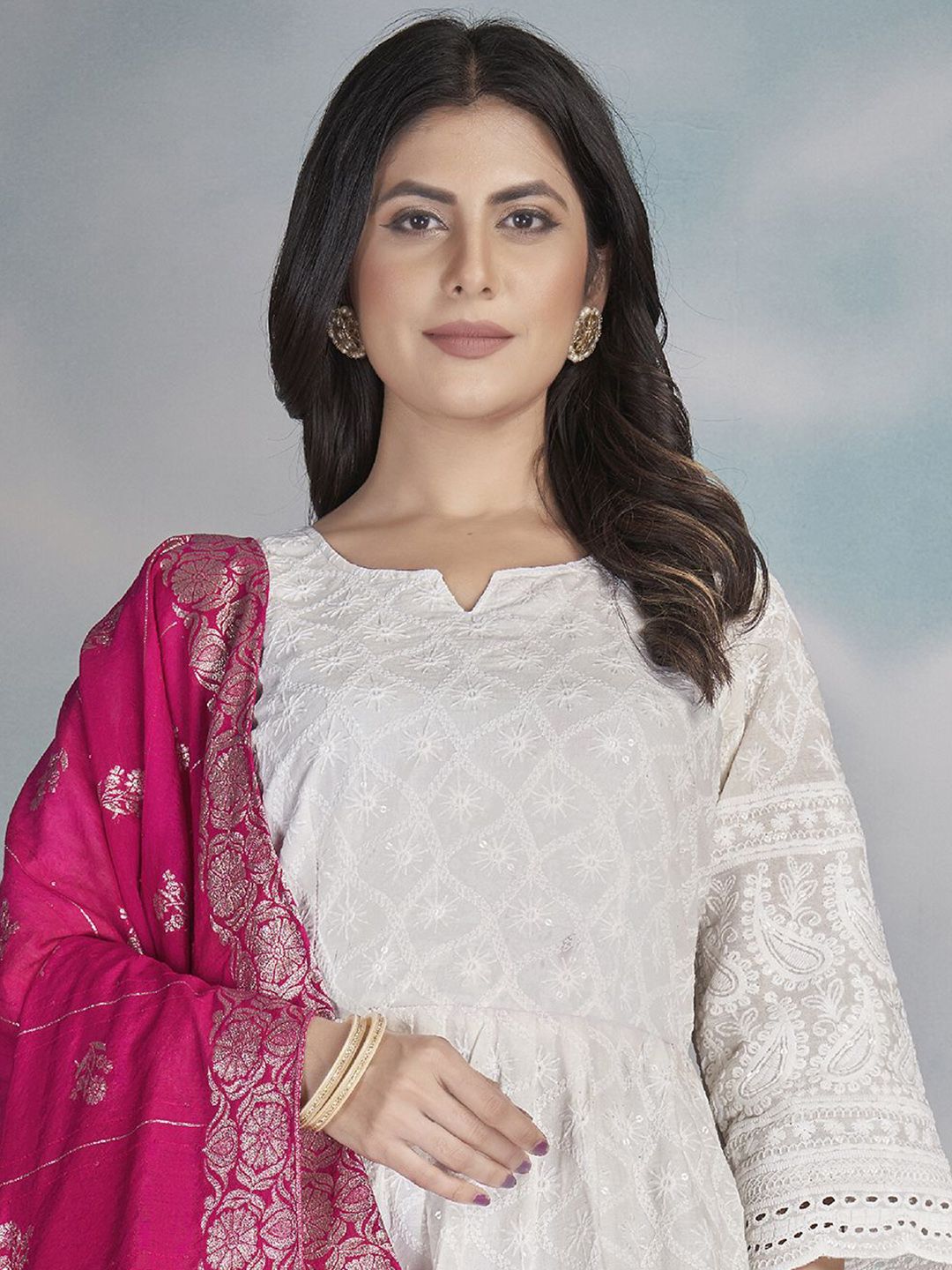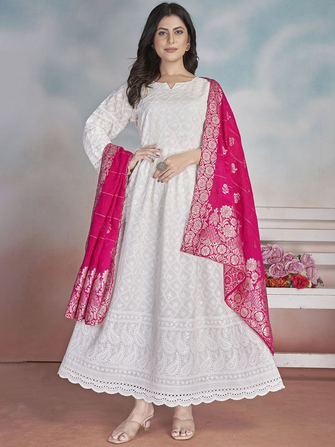 ZIRVI Women Checked Embroidered Cotton Kurta & Dupatta