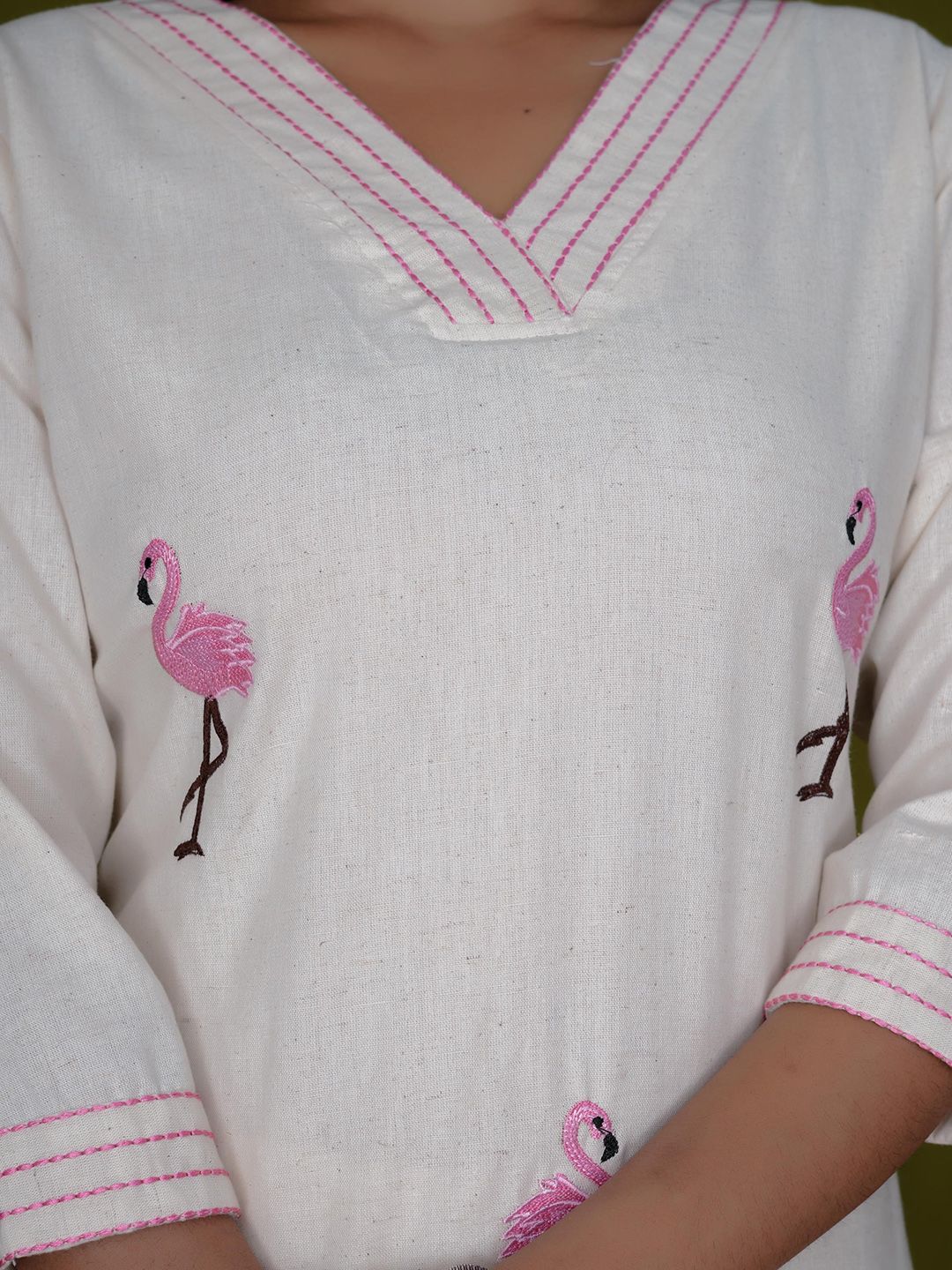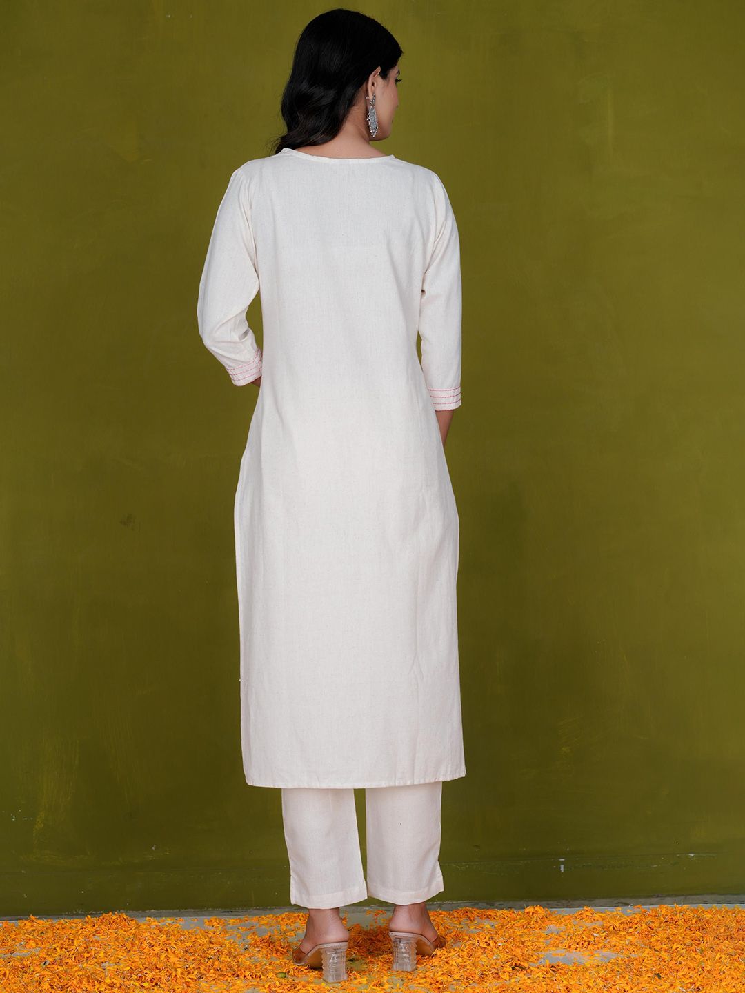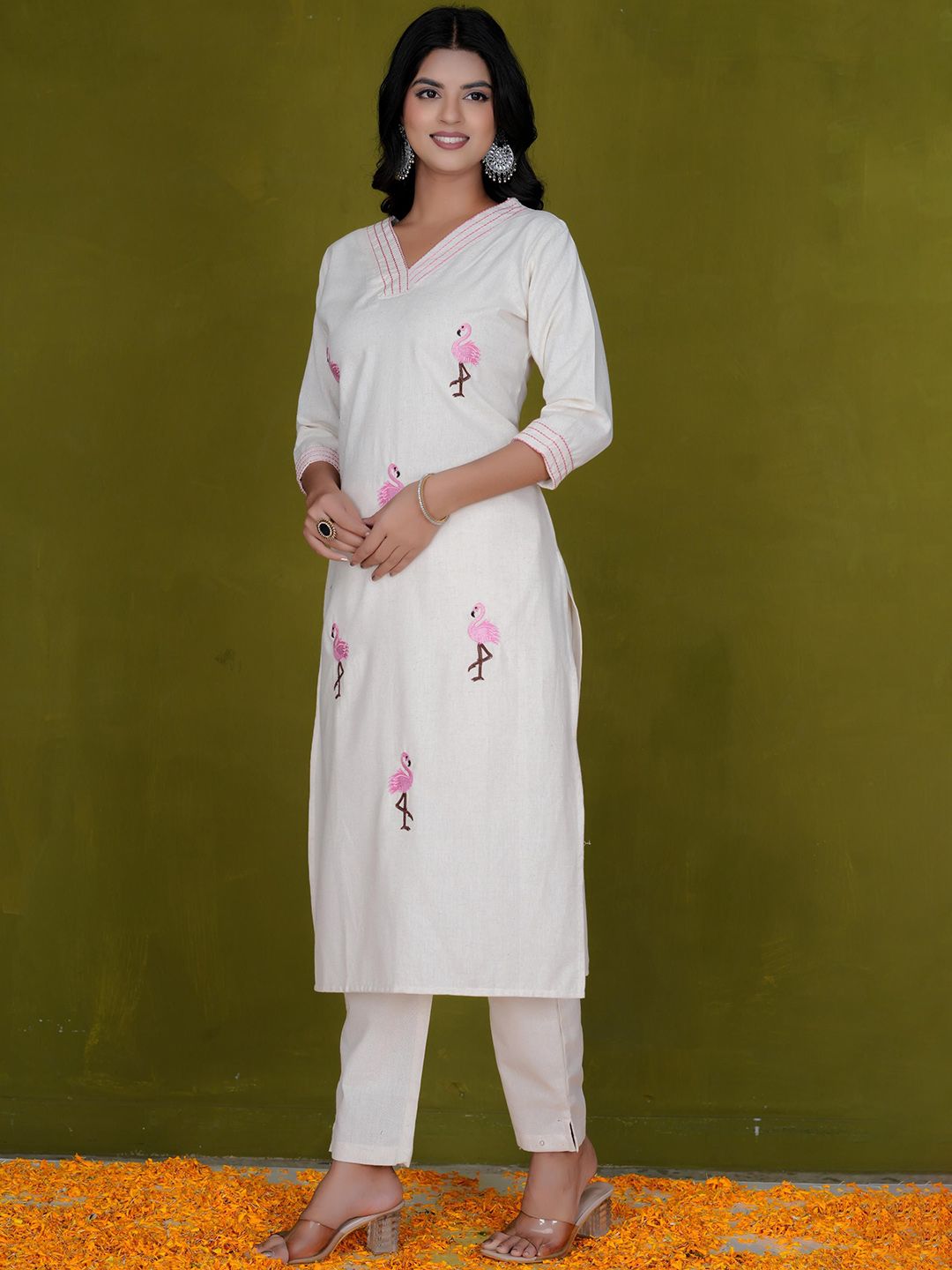 ZOYOTO Women Animal Embroidered Cotton Kurta with Trousers