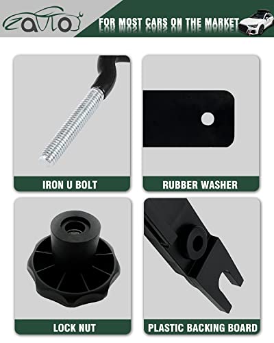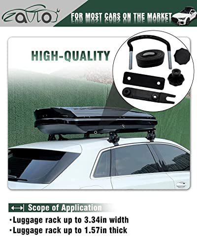 ?FITMENT?This roof box u bolt clamps is suitable for most cars on the market, can be used for up 85mm(3.34 inch) width and 40mm(1.57 inch) thick luggage rack. ?HIGH-QUALITY MATERIAL?u-bolt clamps using galvanized steel material, durable, good alkali resistance, acid resistance, corrosion resistance, strong temperature resistance. ?FEATURE?This product has a rubber gasket and a plastic back plate?which can protect your car from scratches to the greatest extent, and can increase friction to improve overall stability. ?EASY TO INSTALL?: No need to drill and install directly. Accurate mounting size and long-enough bandages, suit your roof box and daily opening and closing box. ?PACKAGE INCLUDED? Roof box rack mounting fitting U-Bolt clamp kits included 4pcs galvanized U bolts, 4pcs plastic backplane, 4pcs rubber gasket, 8pcs heavy lock nuts, 2 bandages?1 Hole Sealing Sticker.