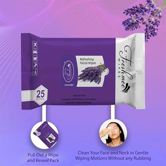 Daily cleansing solution with a premium feel, our Facial Wipes offer a luxurious skincare experience. Effectively removes impurities from the skin, including dirt and makeup, leaving your skin feeling clean and refreshed. Gentle formula ensures a thorough cleanse without stripping the skin of its natural moisture. Convenient and easy-to-use wipes for quick and hassle-free skincare routine, perfect for on-the-go use or at home. Available in 6 unique refreshing fragrances : Aloe vera, Cucumber, Lavendar, Multani Mitti, Ubtan Kesar,Orange Safe to Use: Freshmee cares for you and, hence our Wet Wipes are Alcohol-free and Paraben-free